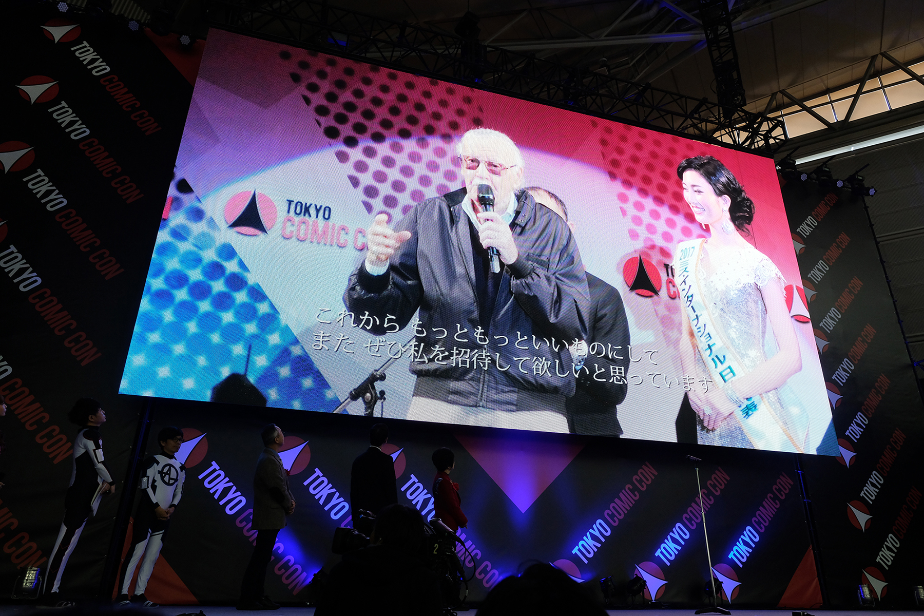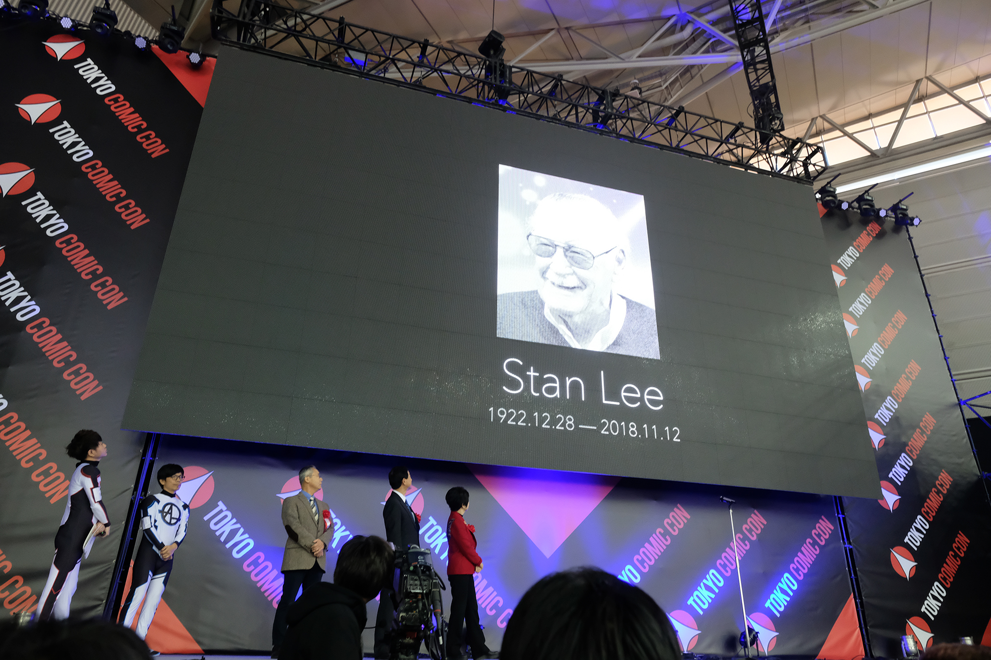 まずは開催に先立ち、2016年より始まったこの「東京COMIC CON」の提唱者である、マーベルの名誉会長であり「スパイダーマン」や「X-メン」などの原作者「ポップ・カルチャーの父」スタン・リー氏の11月12日の訃報を受け、スタン・リー氏の「東京COMIC CON」特別編集映像がスクリーンにて上映され、来場者全員で彼を偲びました。