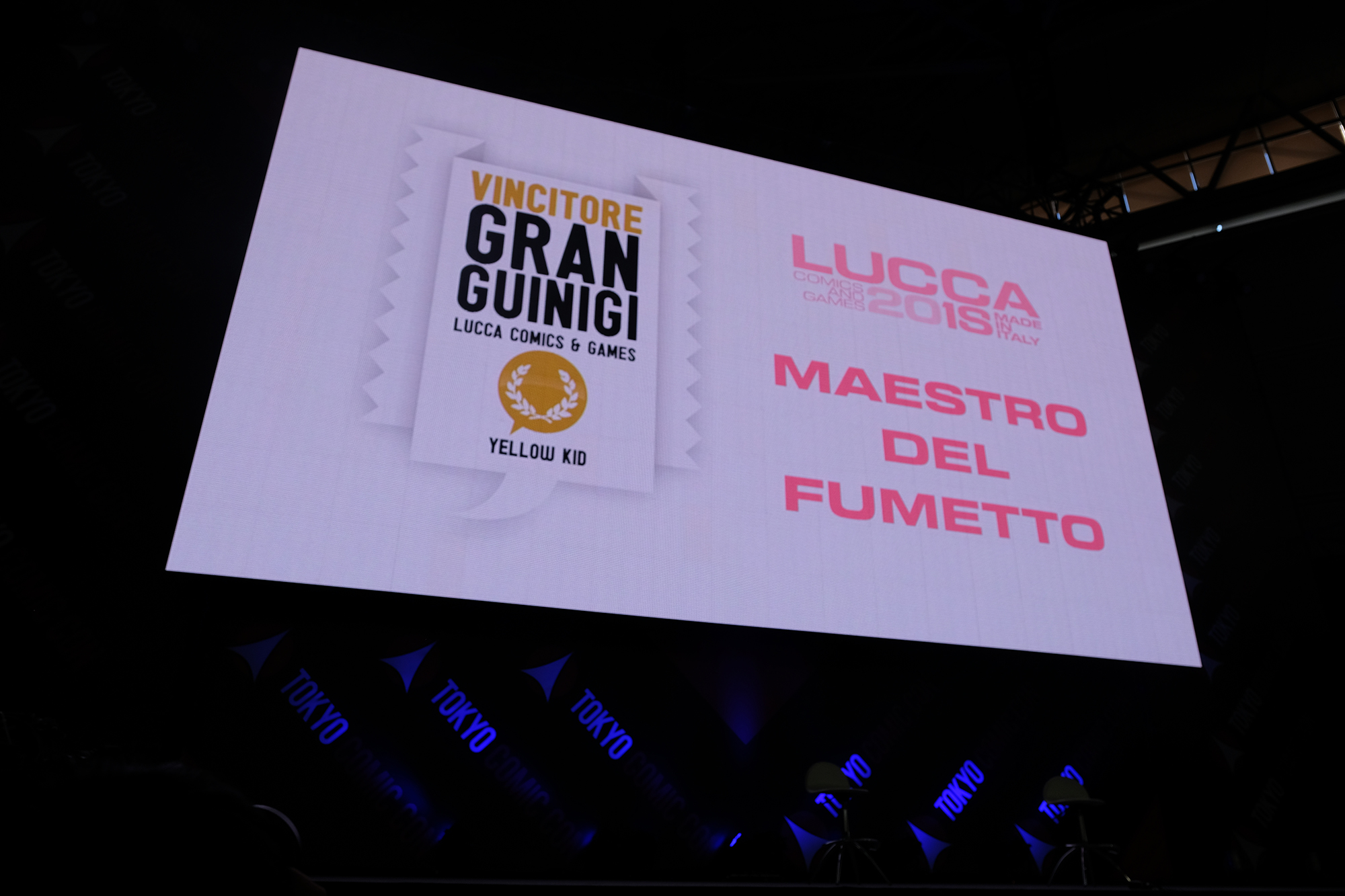 ここで、イタリアのルッカで1966年から続くヨーロッパ最古のコミックコンベンションにて、漫画家としては唯一であり、受賞するにふさわしいと認められた人にだけしか与えられない、『グランドマイストロの称号』を松本零士さんが授与された事が、報告されました。