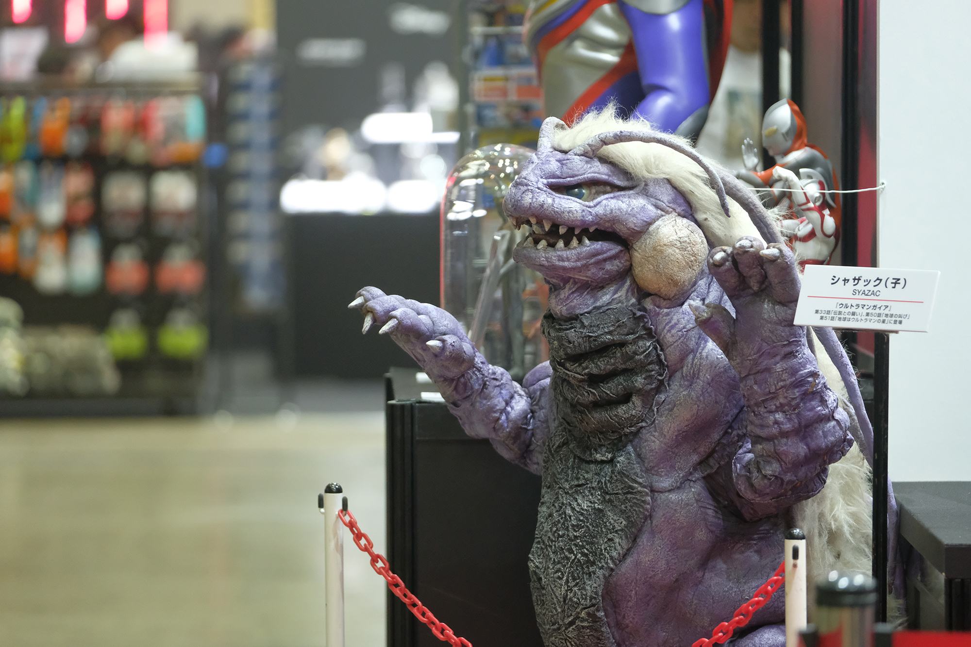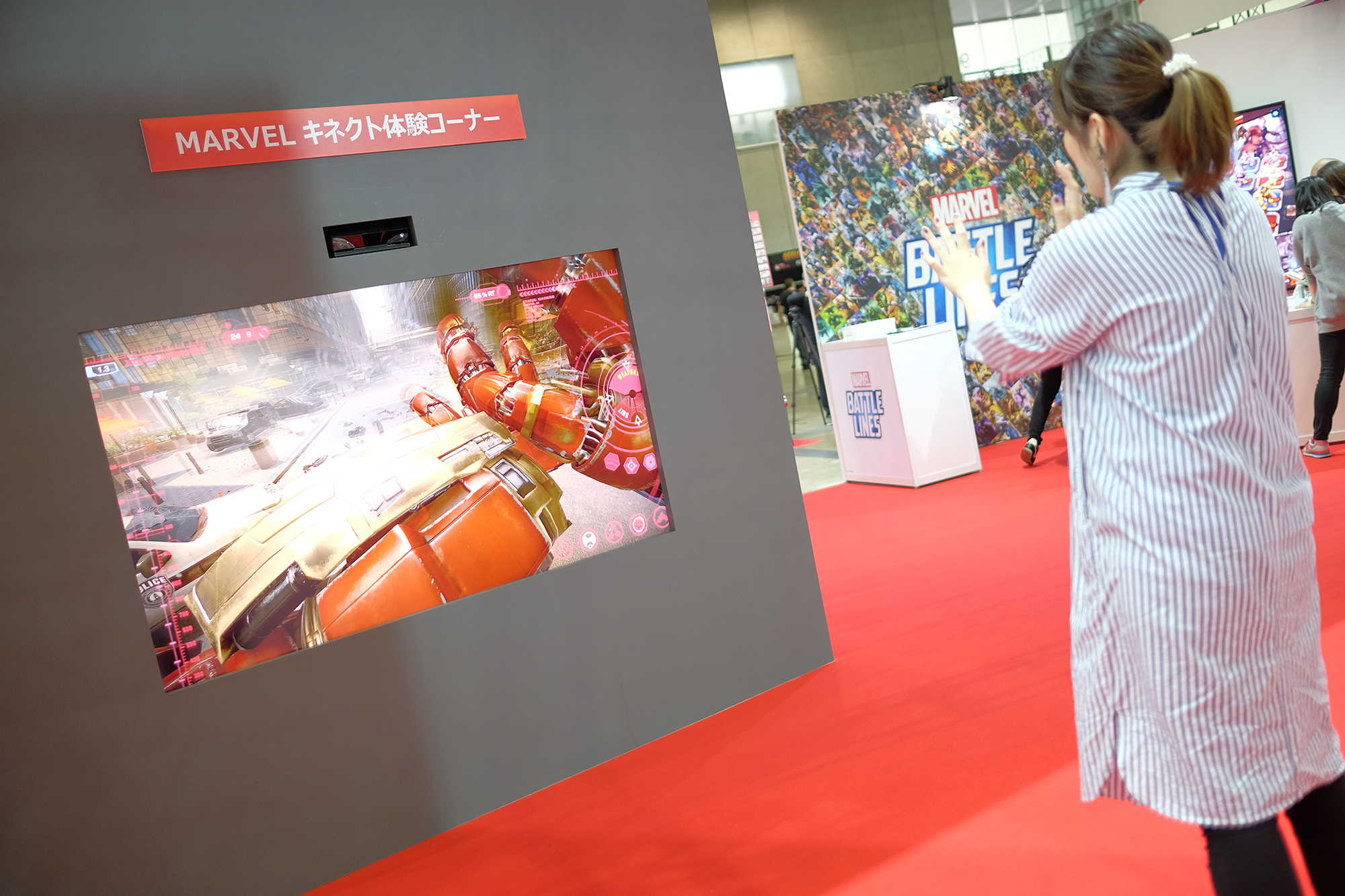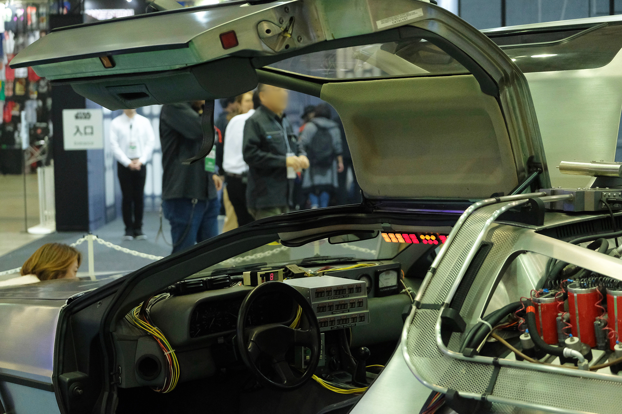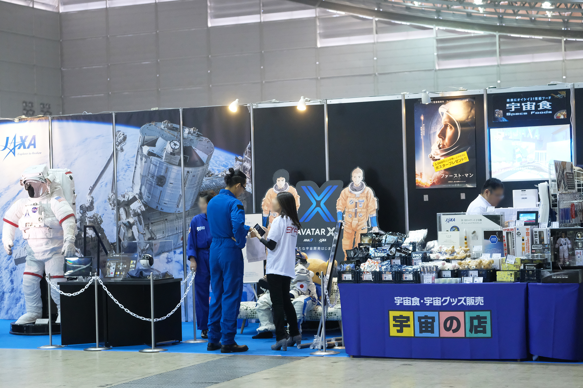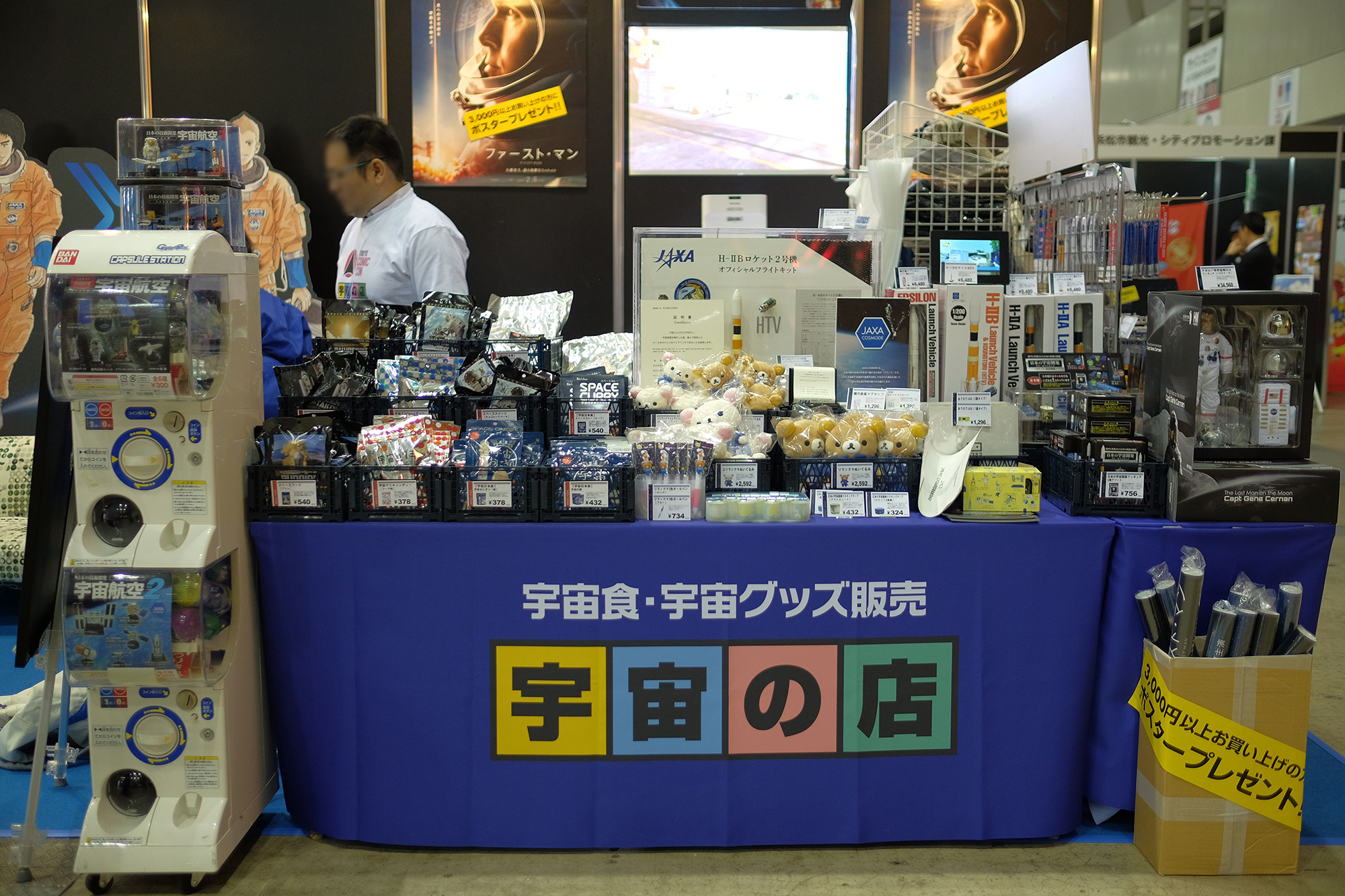 グッズ販売ブースと「ファルコン号のコックピット」の臨場感が味わえる体感型アトラクションブースが展示されました。
