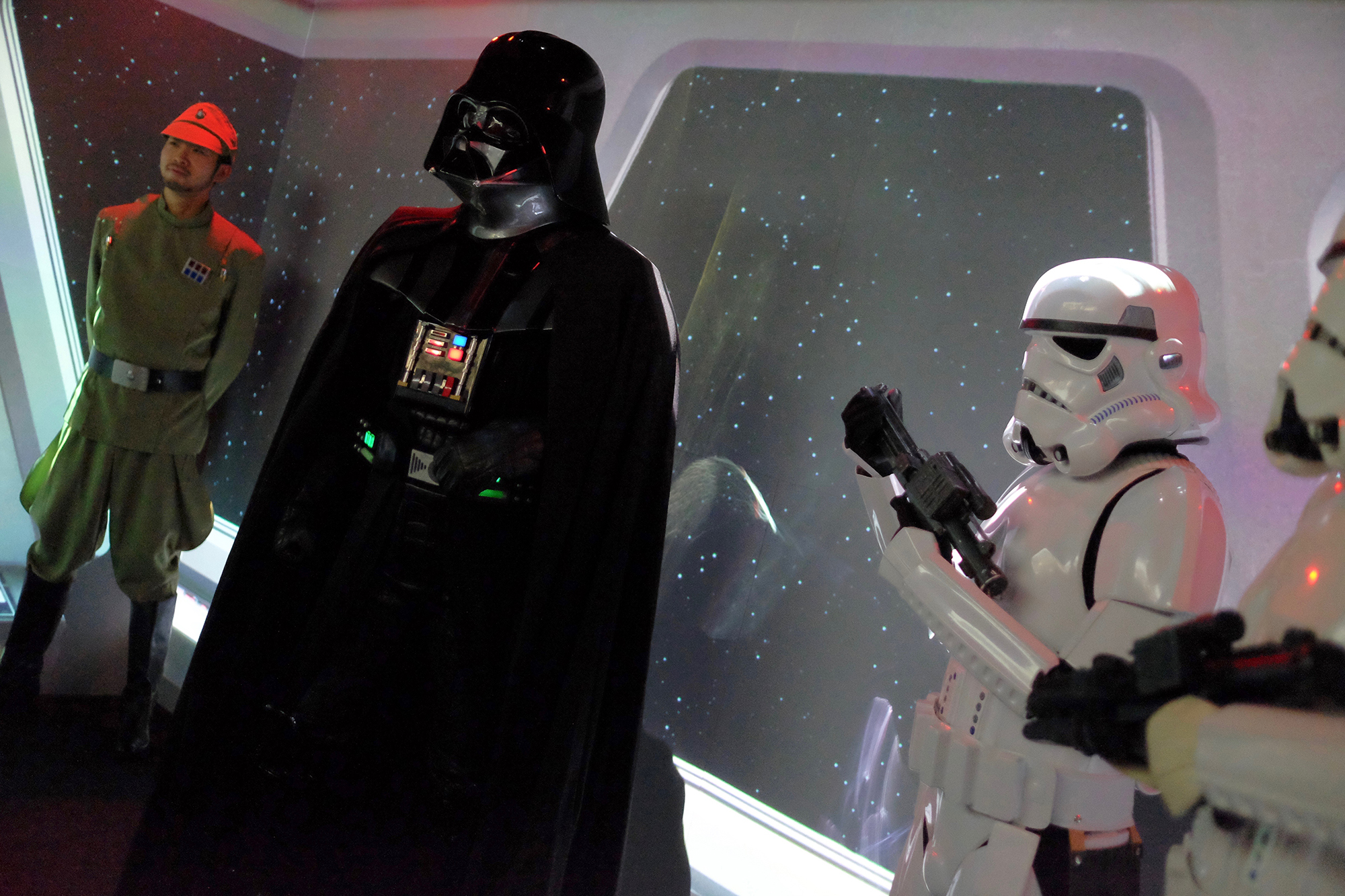 体感型ブース「ファルコン号のコックピット」で突然ダースベーダーとトルーパーが現れ、民間人を人質に捕り危機一髪!