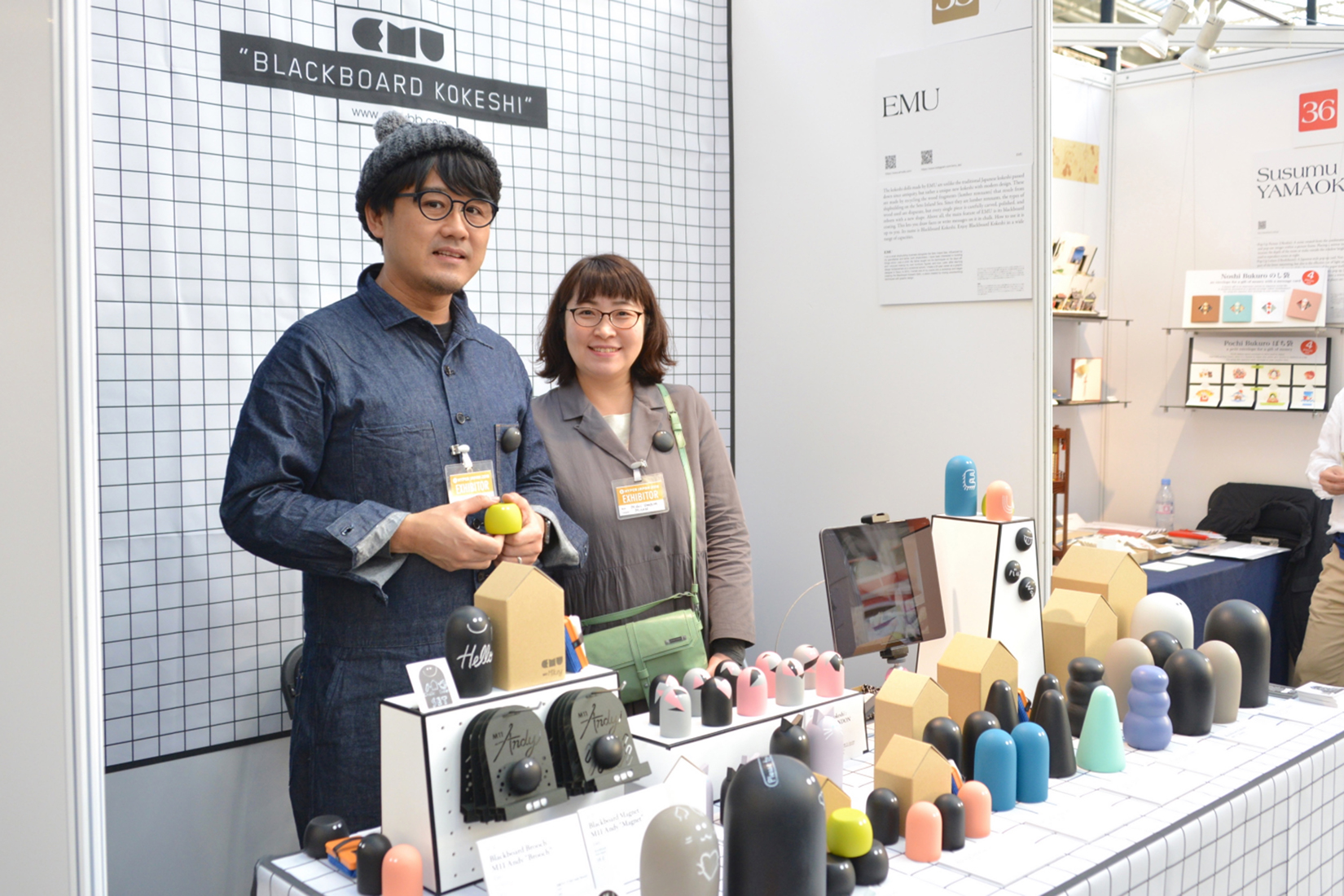 ブースいっぱいに様々な商品を並べた雑貨屋。和雑貨らしい淡い色彩の可愛らしい雑貨が沢山あり、子供の頃行った文房具屋さん様な楽しさだ。特に気になったのが、消しゴムはんこ。自分の名前を掘ってくれたり、いろいろな絵柄をスタンプに手軽にできる。