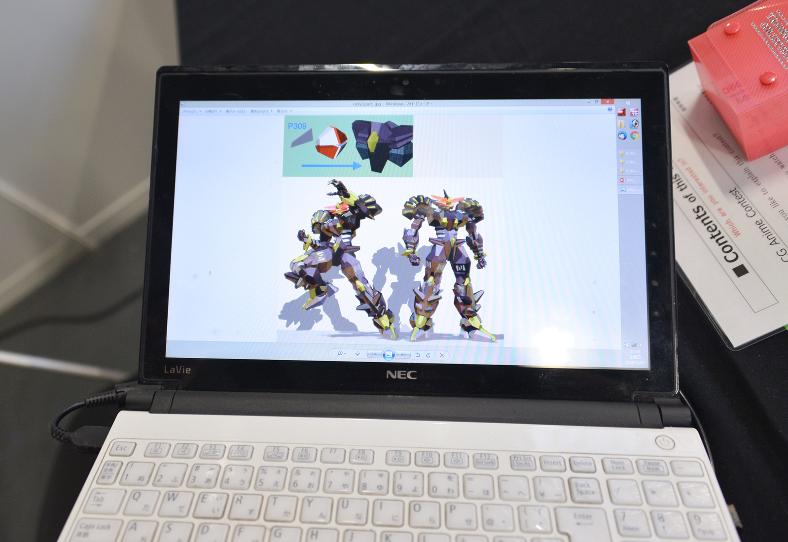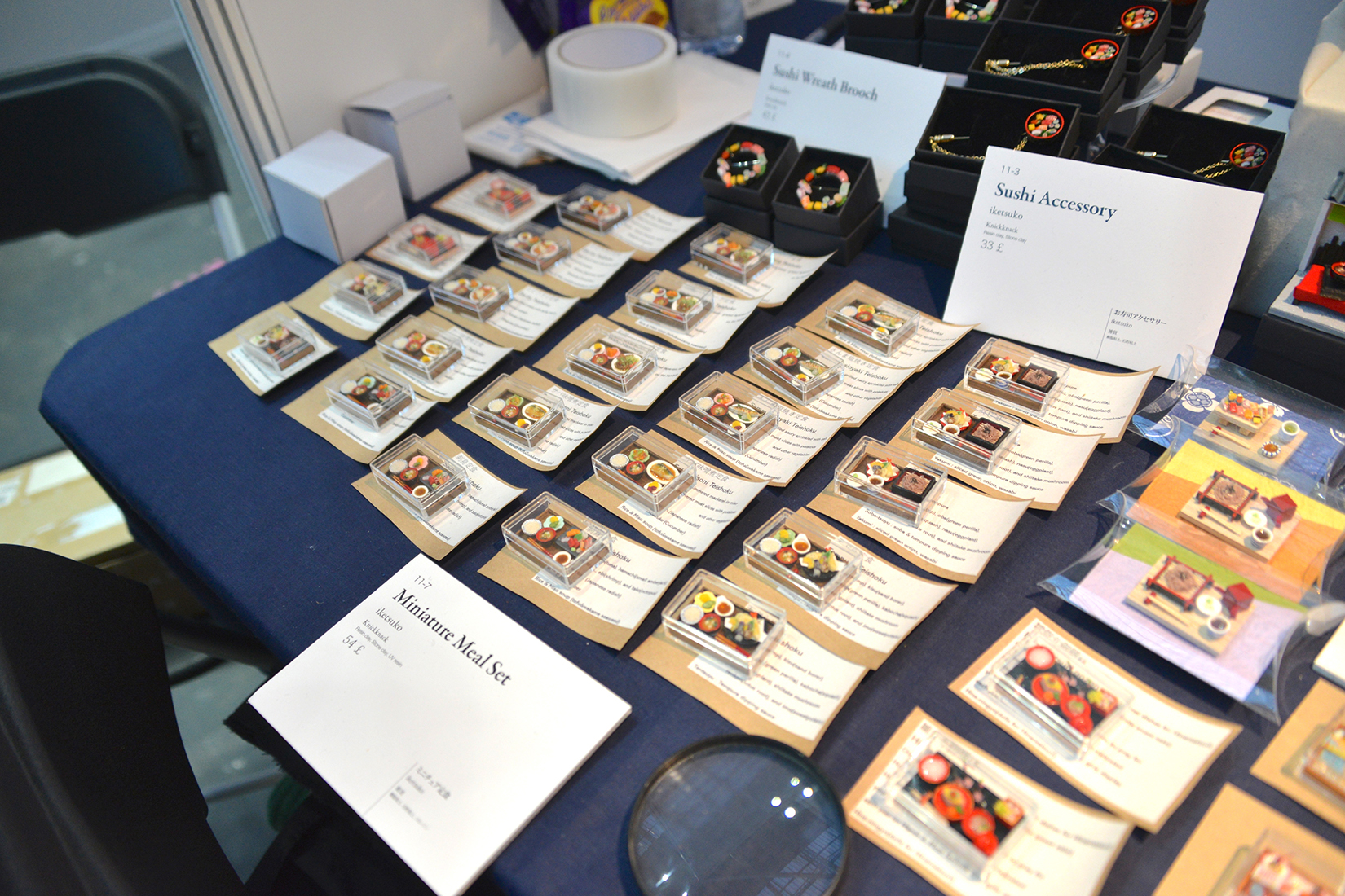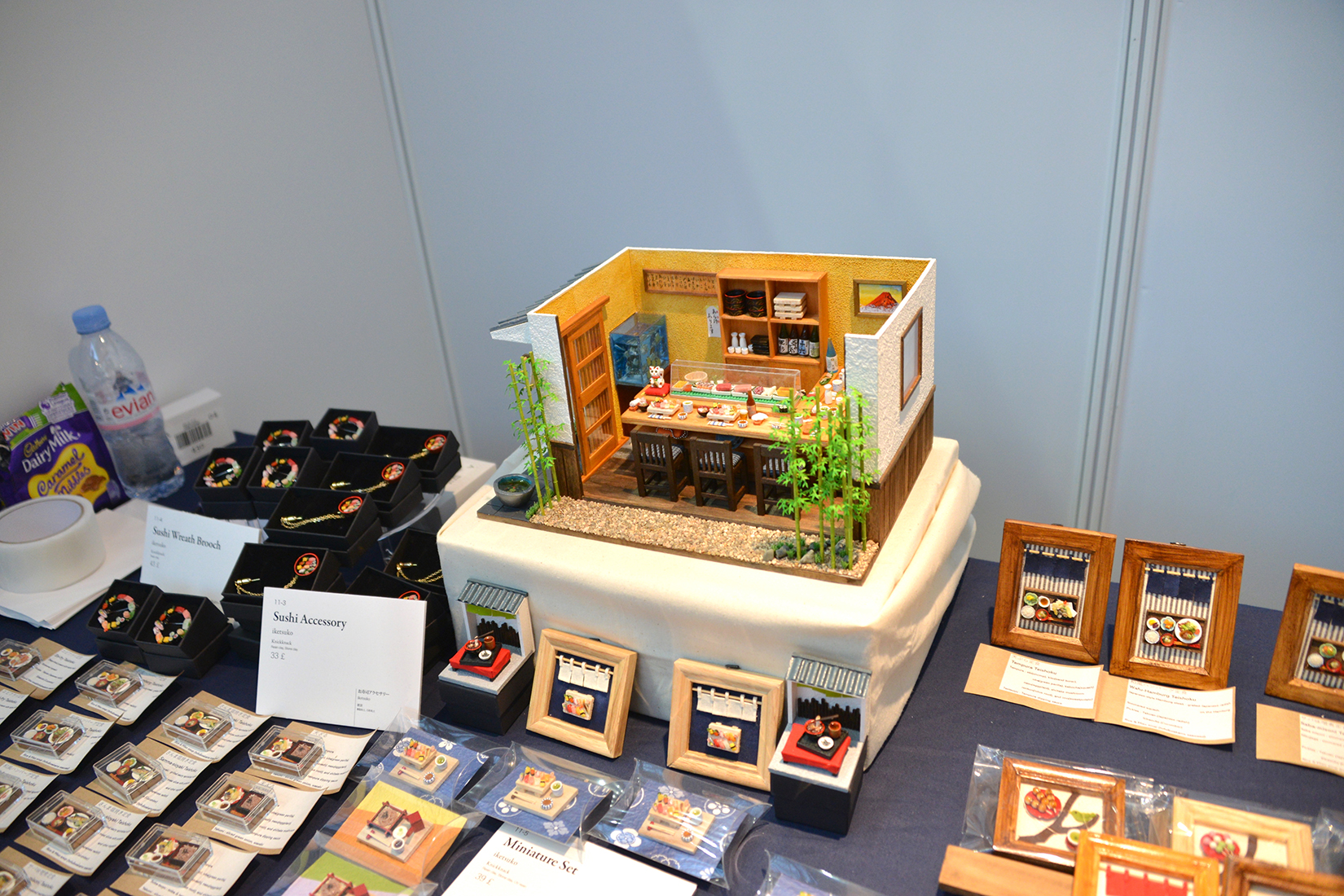 見ているだけで楽しくなる巧妙に作られたミニチュア作品。ただ細かいだけでなく、本物により似せて作ってある。ブースには虫眼鏡が置いてあり、皆、米が1粒1粒作られているのを確認し驚きの表情を見せる。特に目を引いたのは寿司屋であり、寿司屋の内装、カウンターの上に置かれた寿司などが本当に見事に作られていた。