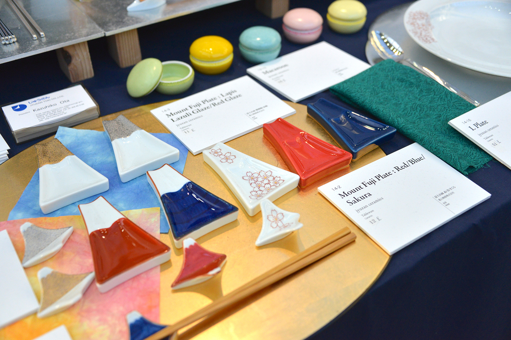 長崎からは伝統的な波佐見焼の古典分様の器を始め、ユニークなキャラクター商品も扱う、機能ととデザインを総合的に研究し、独自の商品を開発している。富士山が湖に映し出された様子を元にデザインされた箸置き、二つの小皿が一つについた皿などは確かにユニークで使いやすい。