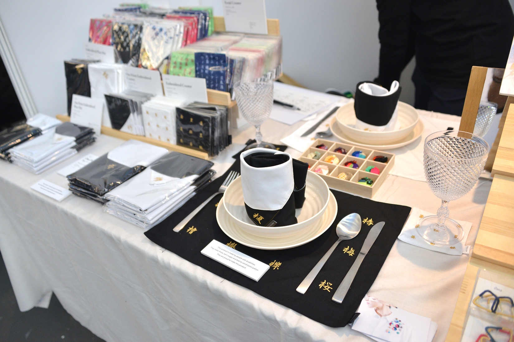 愛知県で障害者就労持続支援B型事務所を経営され、雑貨店と併設することで、障害者の方が製作した作品の展示、販売も行っている井藤瑞栄さん。作品には刺繍などを施した小物から洋服まで様々な種類がある。障害者の方々が社会と協調、共聴、共存し共鳴できる環境づくりがコンセプトとしてある。
