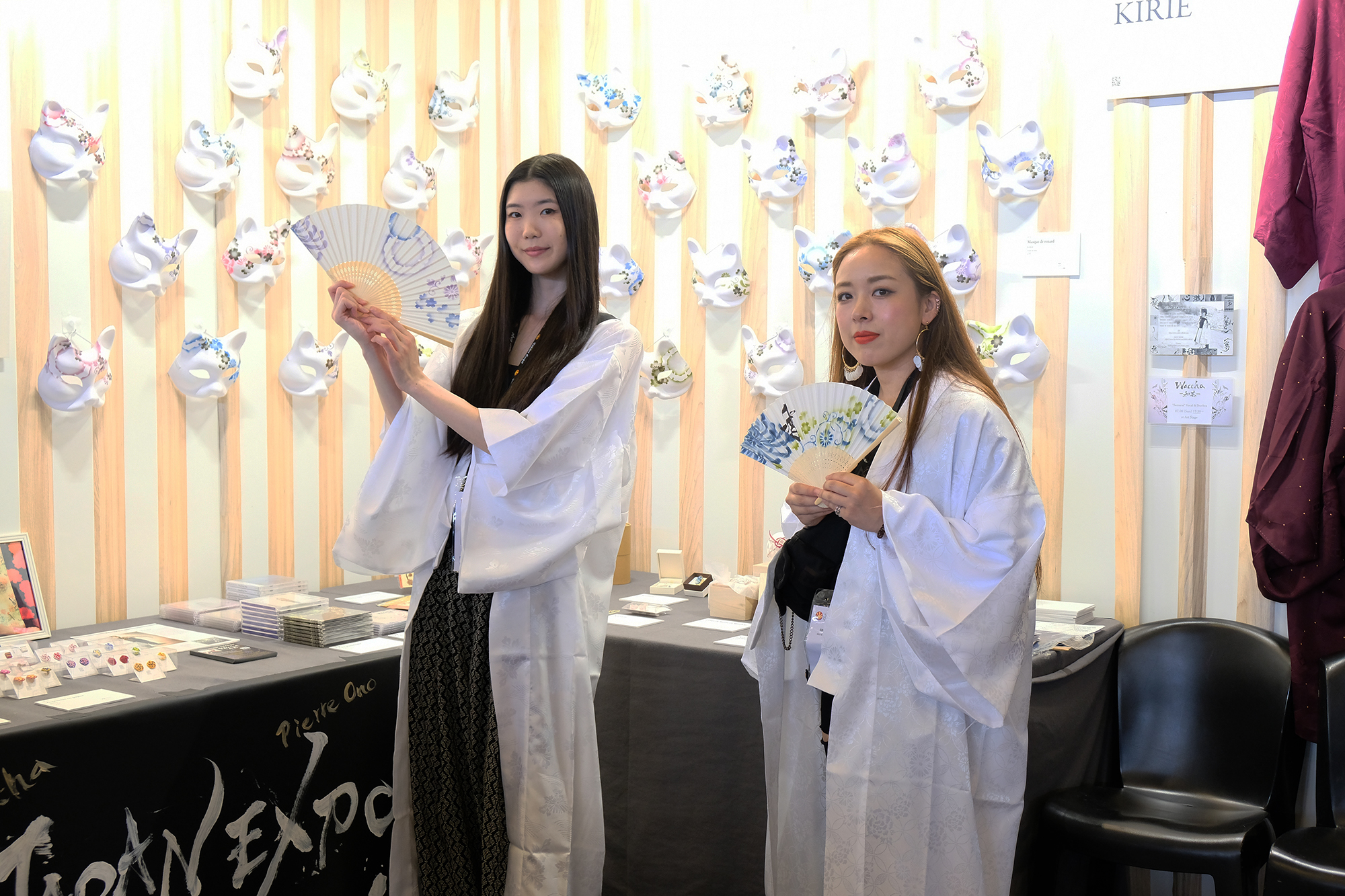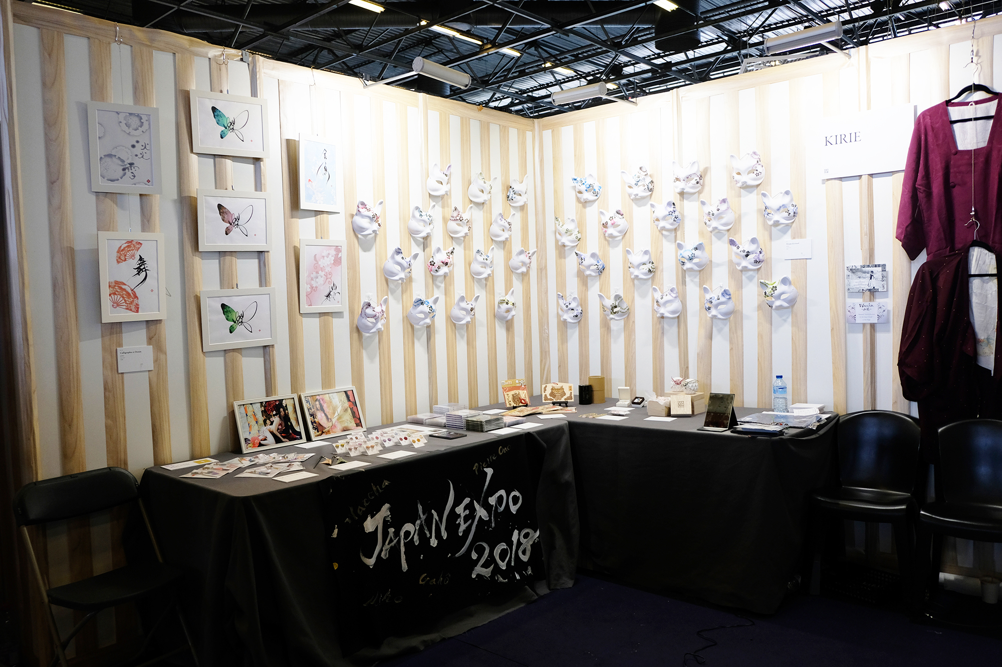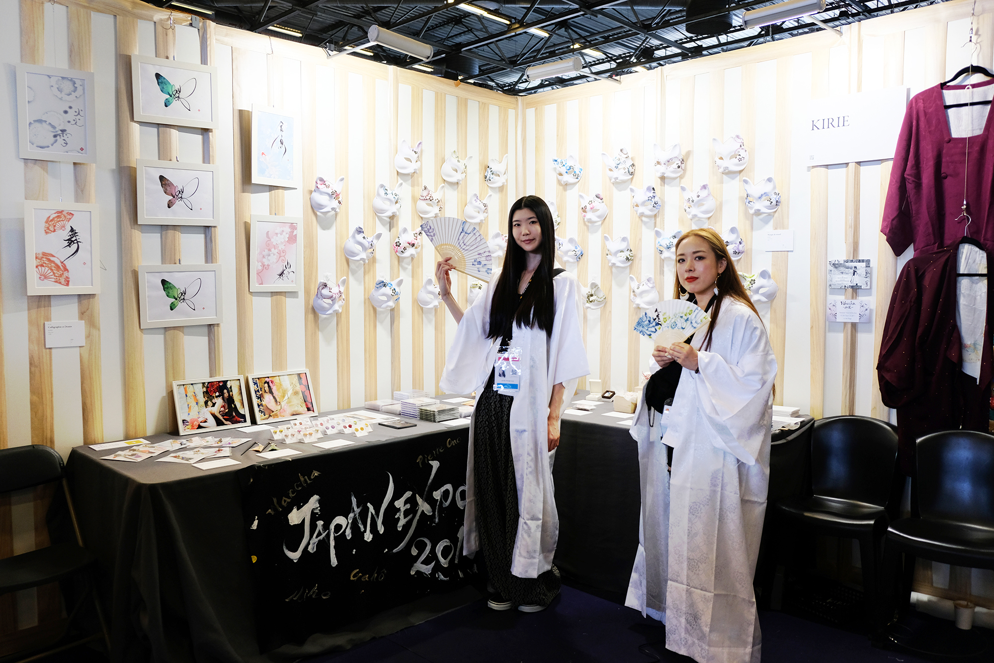 そして、”WABISABI”のコーナーでは日本の伝統文化の方々のブースが沢山出展されていました。その中でも昨年取材させて頂き、2014年から参加されている“KIRIE”さん、KIRIEさんと良くコラボをされている書家の“美帆”さん、そして最近流行り始めているアートとしての緊縛パフォーマーの“吉井だりあ”さんとお話させて頂きました。