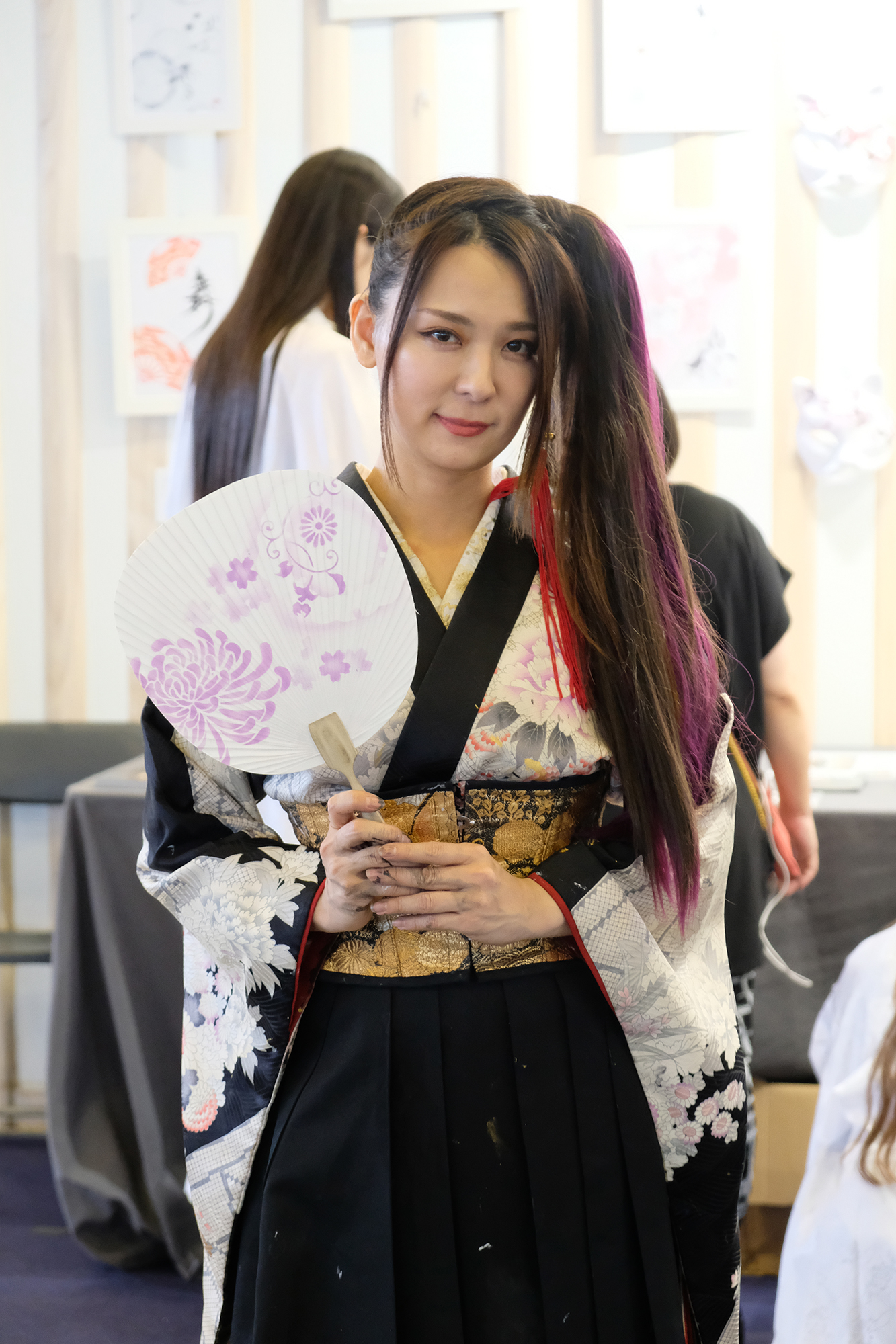 そして、SAKURAステージでの素敵なパフォーマンスを終えられて、ブースへ戻ってこられた書家の“美帆”さん。小さい頃から書道はしていたけれど、初めは書家を目指していなかったとの事。俳優さんを目指されたり、外の事を経験している中で、自然と“文字を書く”、“書を自らの自由にアレンジして書きたい”と思うようになっていったのだそうです。今はファンの皆様の応援があるからこそ頑張れます!!と熱くおっしゃられていました。美帆さんの美しい書の世界を是非覗いて見てはいかがでしょうか?