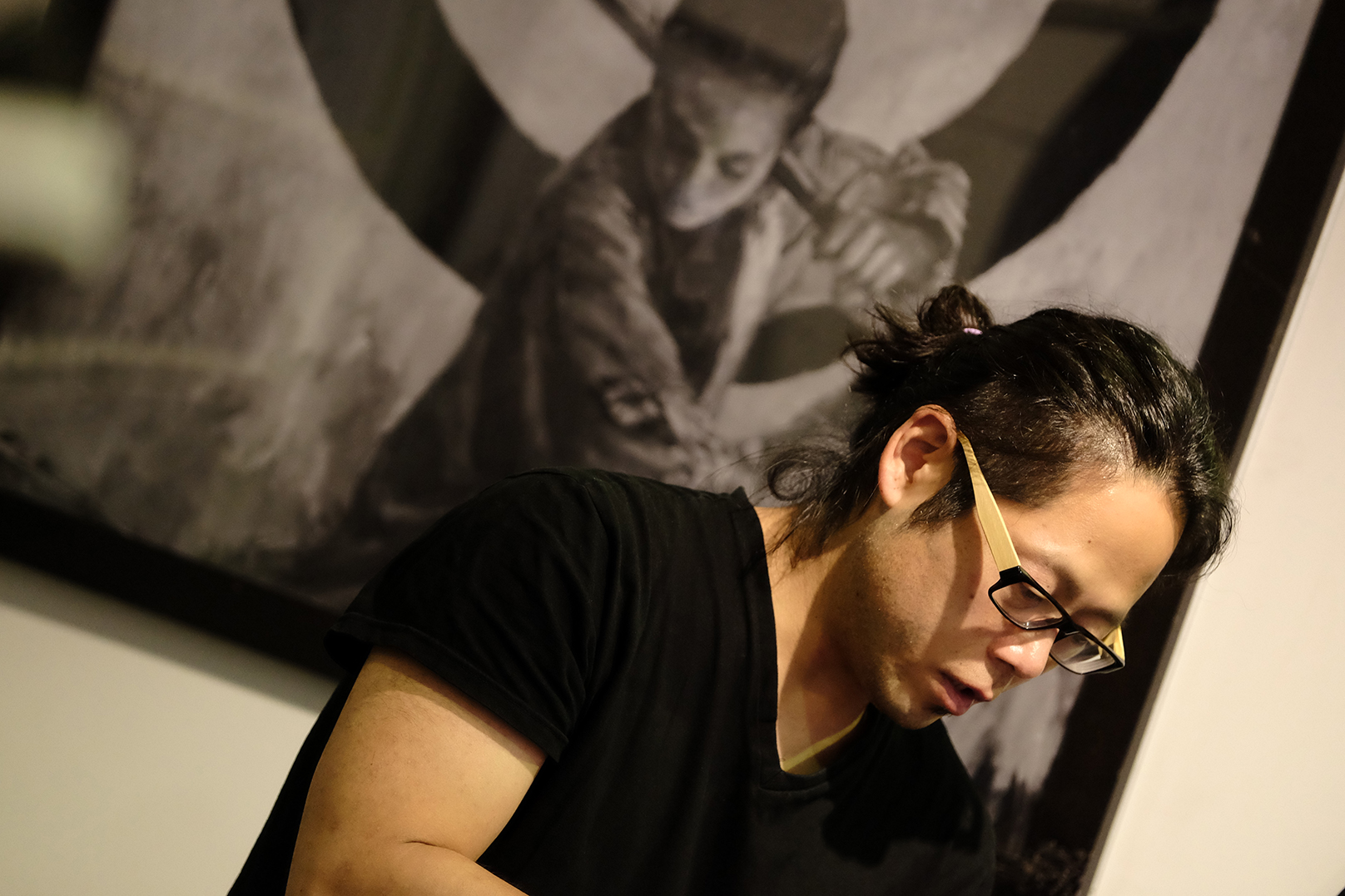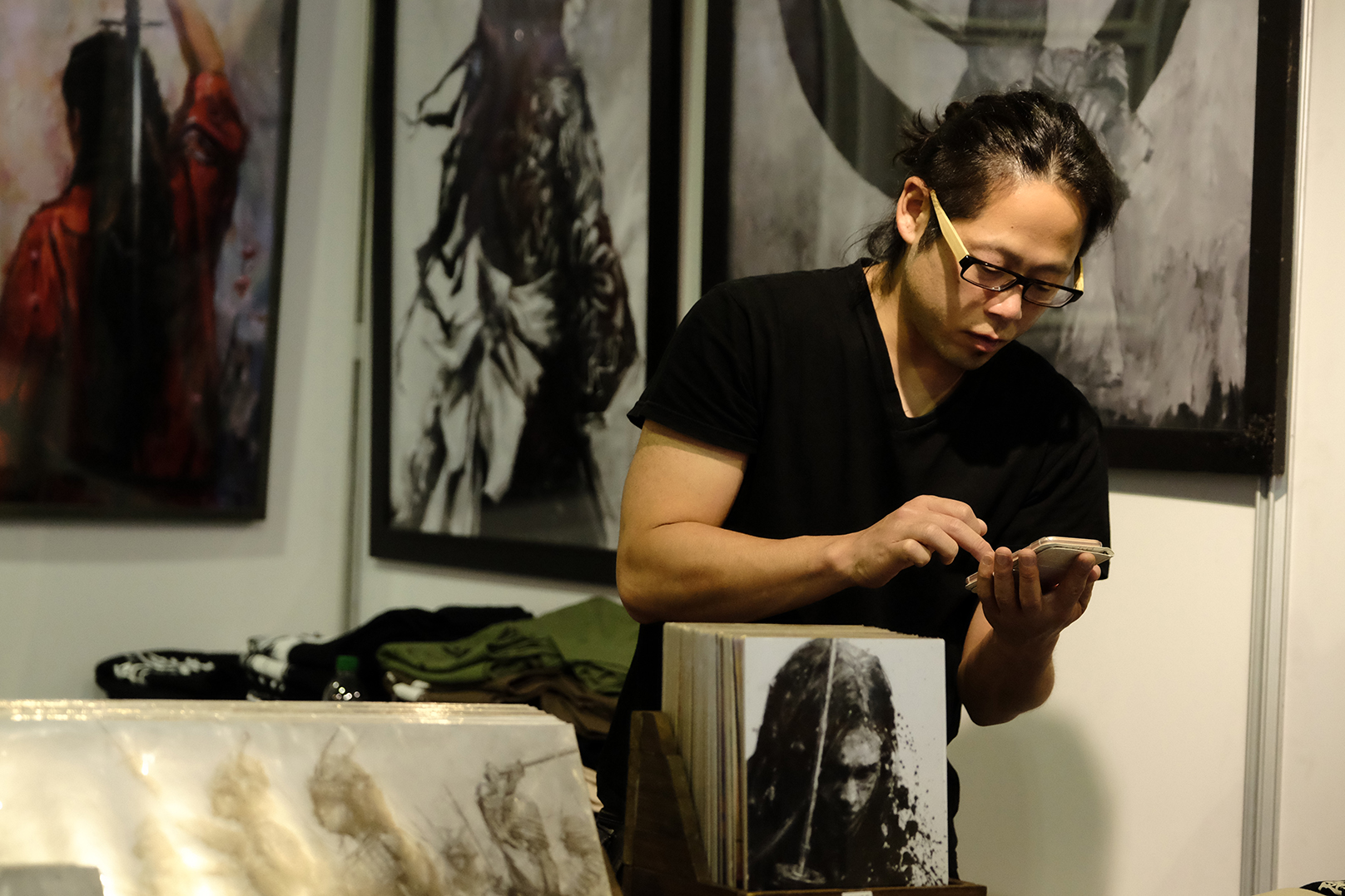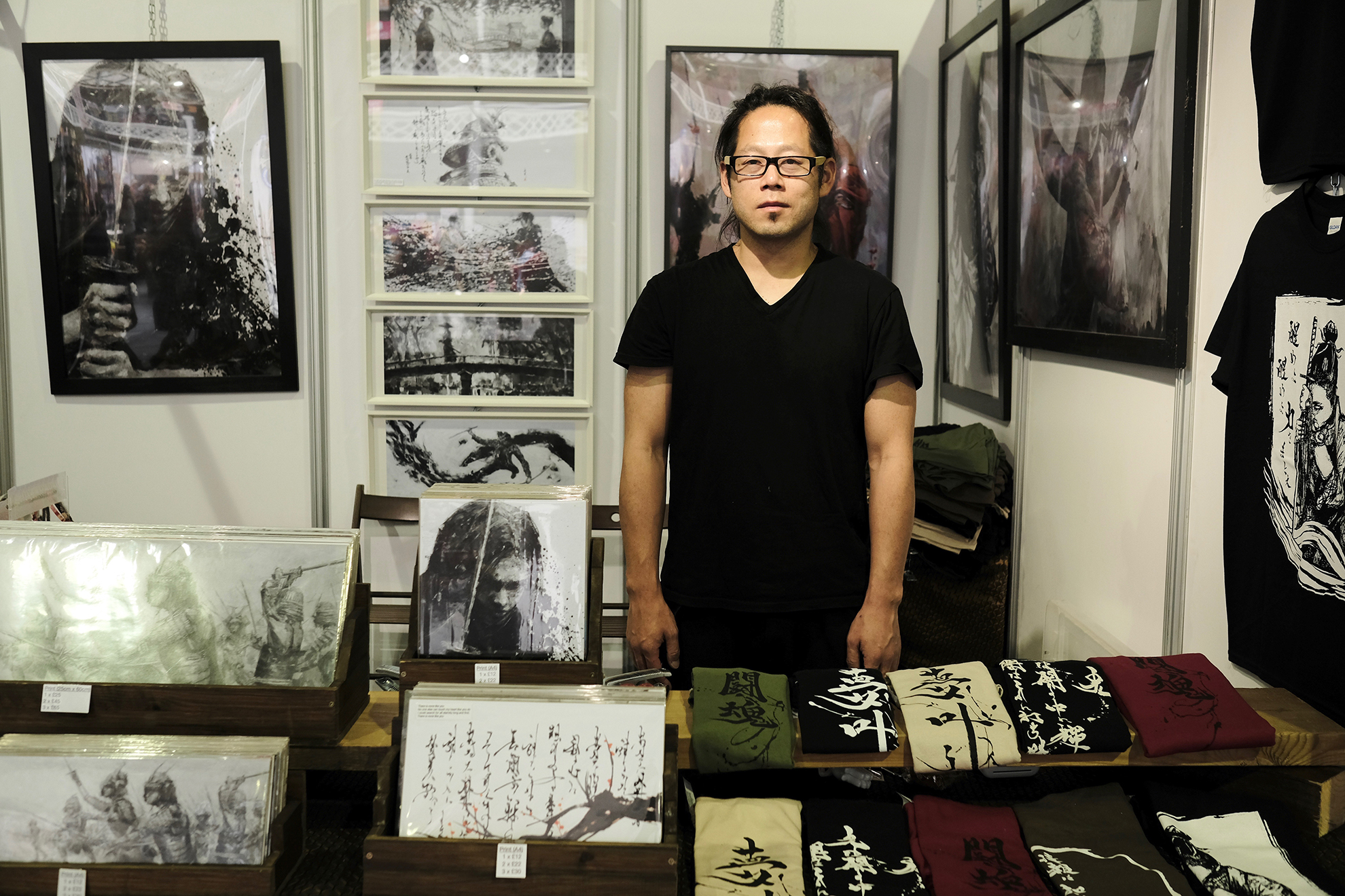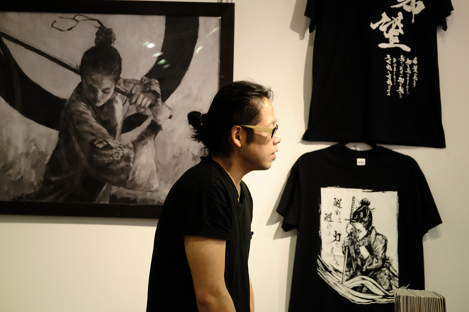 ・墨絵画家/志民安総…イギリス在住にて活躍中。主に侍と芸者をモチーフに描かれている。ご本人も墨絵の様にとても物腰穏やな方でいらっしゃいました。