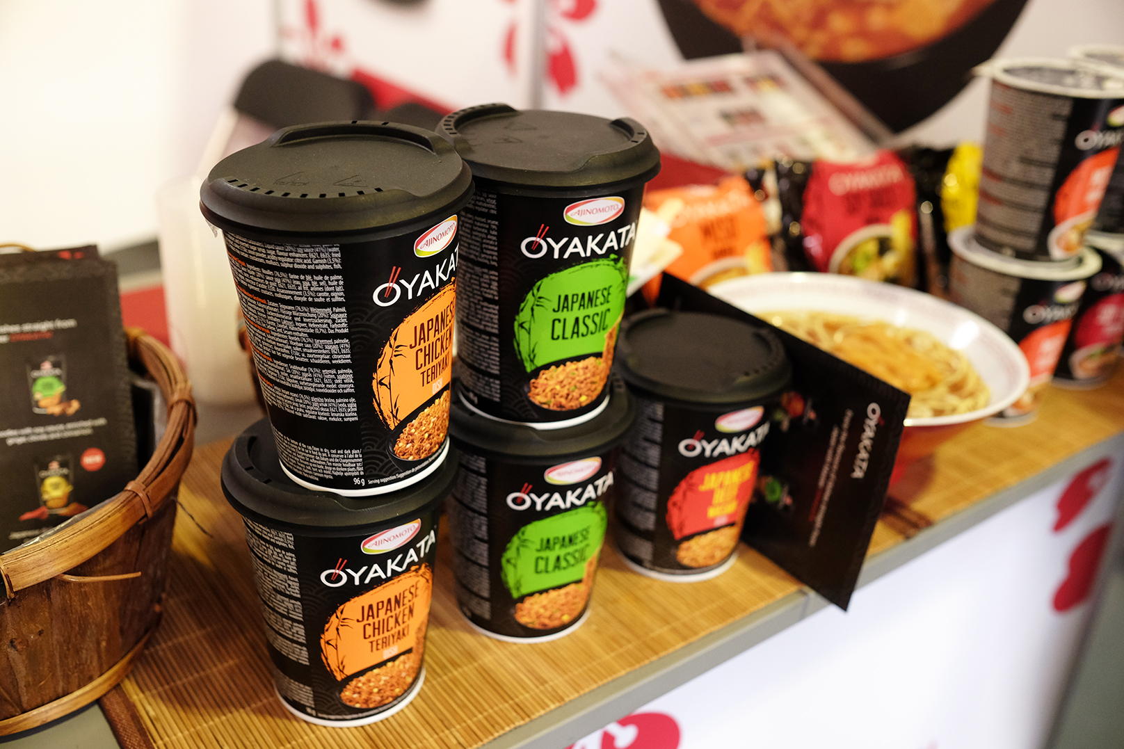 ・日本では当然お馴染みの味の素ポーランドさん。『OYAKATA』という銘柄の”カップラーメン”と”カップ焼きそば”を既にヨーロッパでは展開しており、その製品はポーランドで作られているそうです。お話させて頂いた坪井社長さんが「ここ、イギリスですよね!日本の味の素何ですけど、ポーランド作っているんです!面白いですね~、こんがらがっちゃいますよね!(笑)」と絶妙な話家さんのように色々とお話してくださいました!味はやや海外向けな味付けでしたが、焼きそばに関しては日本で見かけない製品でしたので、是非日本へ逆輸入をして欲しいとリクエストをさせて頂きました(笑)。逆輸入に関して色々と困難もある様ですが、今後日本を国際化する為、人も物も流通を活性化させる為、是非”OYAKATA”の国内での販売を心よりお待ちしております!