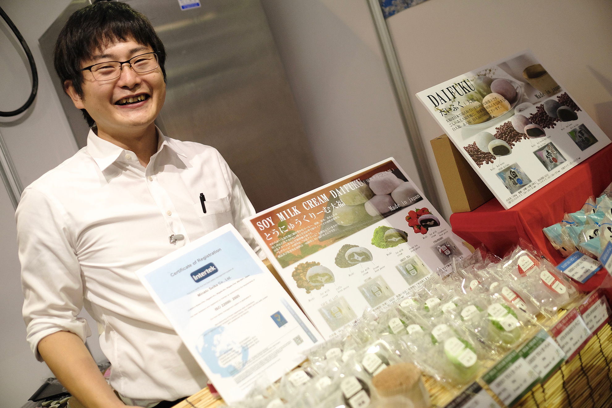 ・日本の米どころ・新潟が拠点の株式会社港製菓さん。豆乳を使ったクリーム大福を持って今回は参加との事。クリームとあんこのハーモニーともちの柔らかさがたまらない! ➡ http://www.niigata-minato.co.jp/