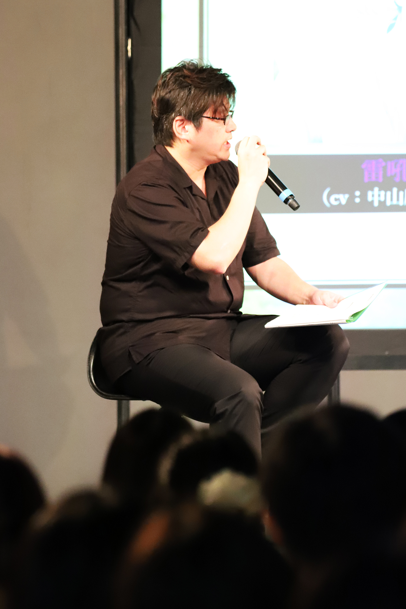 そんな牙狼<GARO>アニメシリーズとの関わりや、雨宮慶太監督とのお話で盛り上がると、話は自然とキャラクターデザインについてへと移り、スライドに映し出されたキャラクター設定画を見ながら、桂先生が制作時のお話をされていきます。