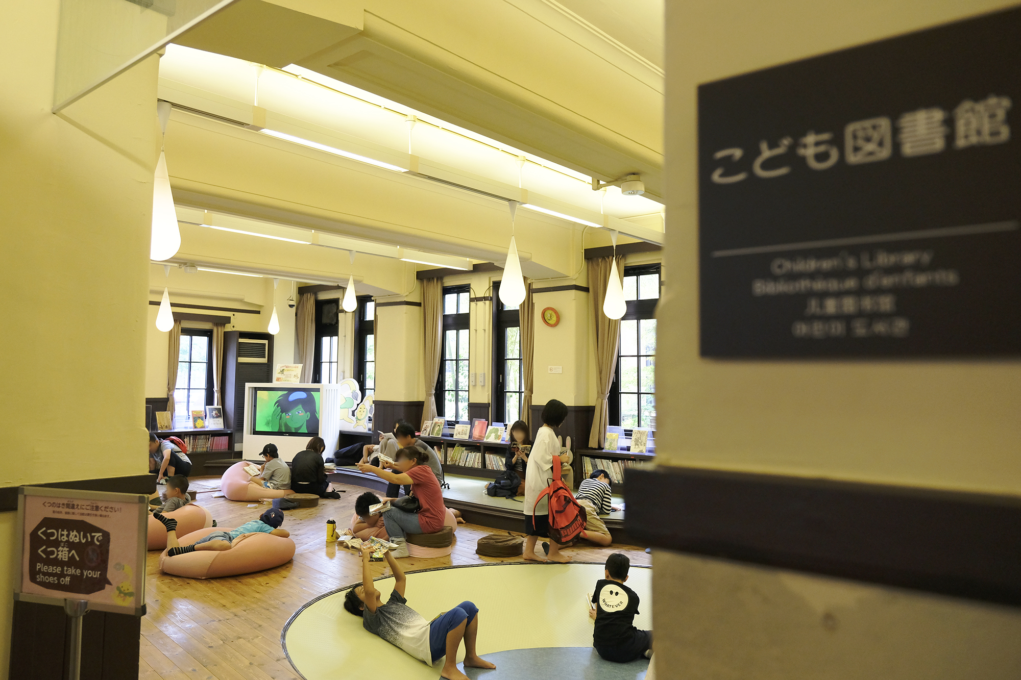 ◎子ども図書館 …靴を脱いでゆっくり寛げる事の出来る場所の一つ。