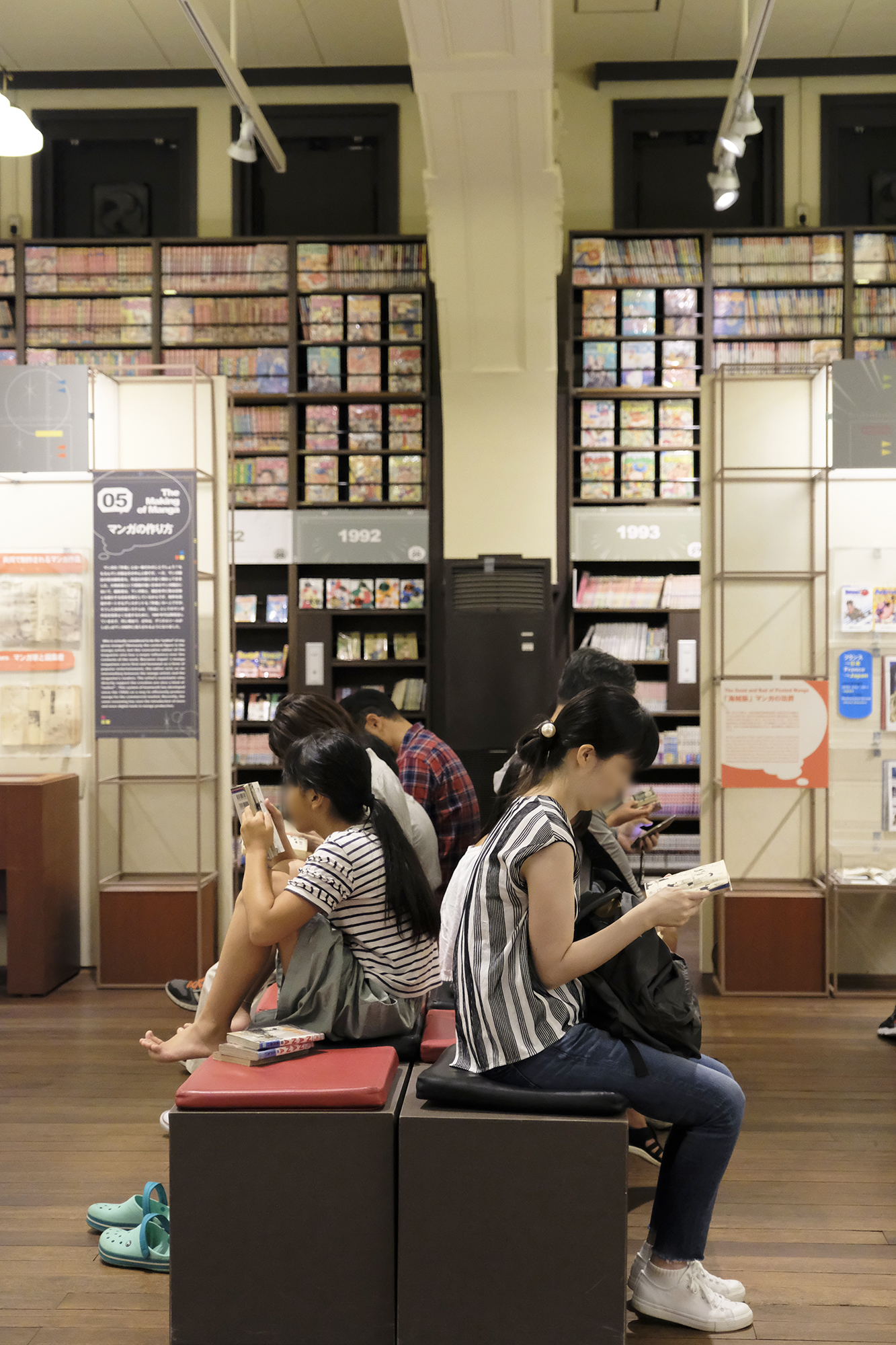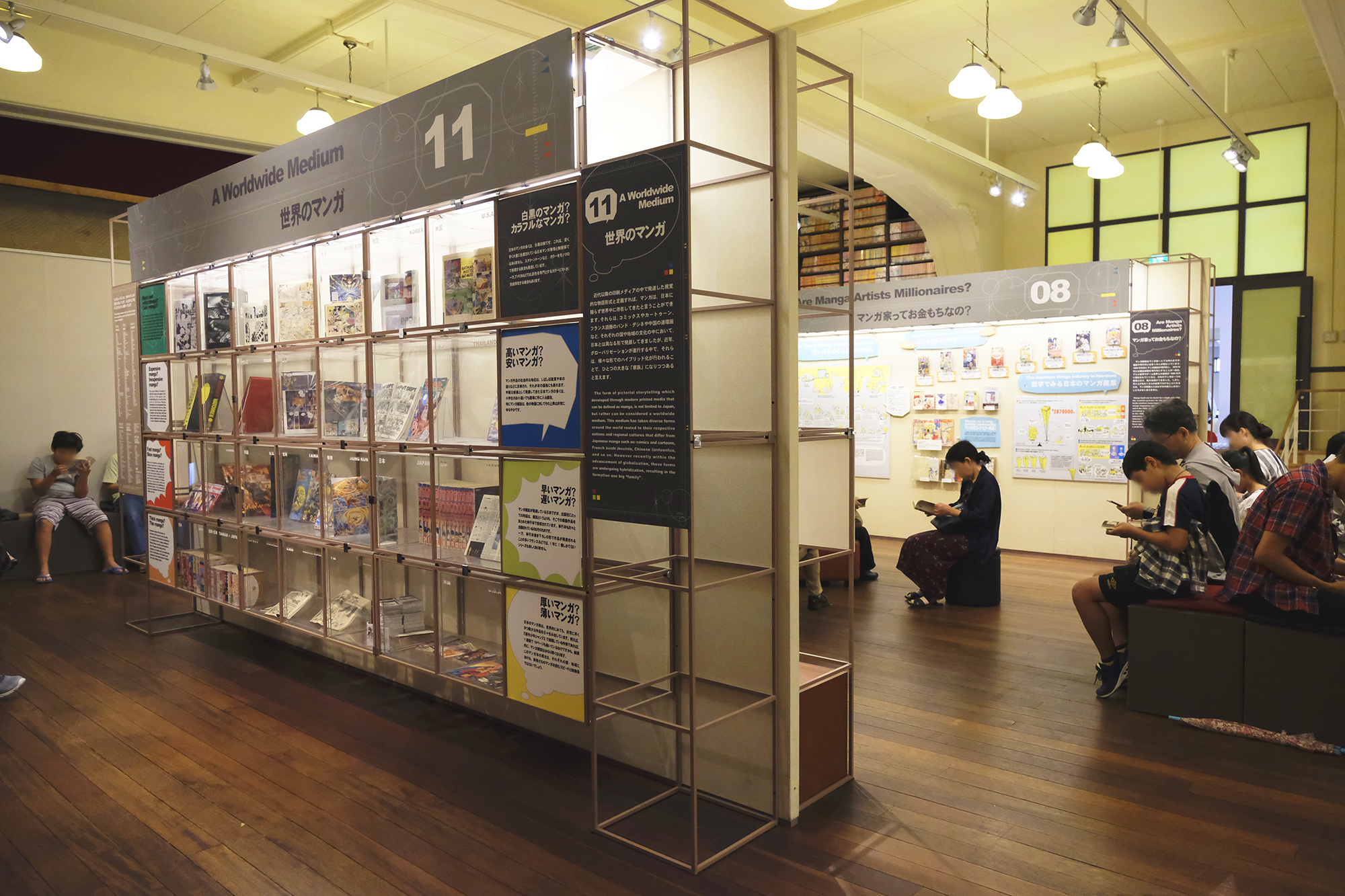 エントランス近くの「マンガ万博」コーナーでは、日本マンガの翻訳語版や海外で出版されたコミックスが約5000冊設置。また、地下には雑誌や1970年代以前の資料が収蔵されており、登録を行えば、3階にある閲覧室にて閲覧可能との事。