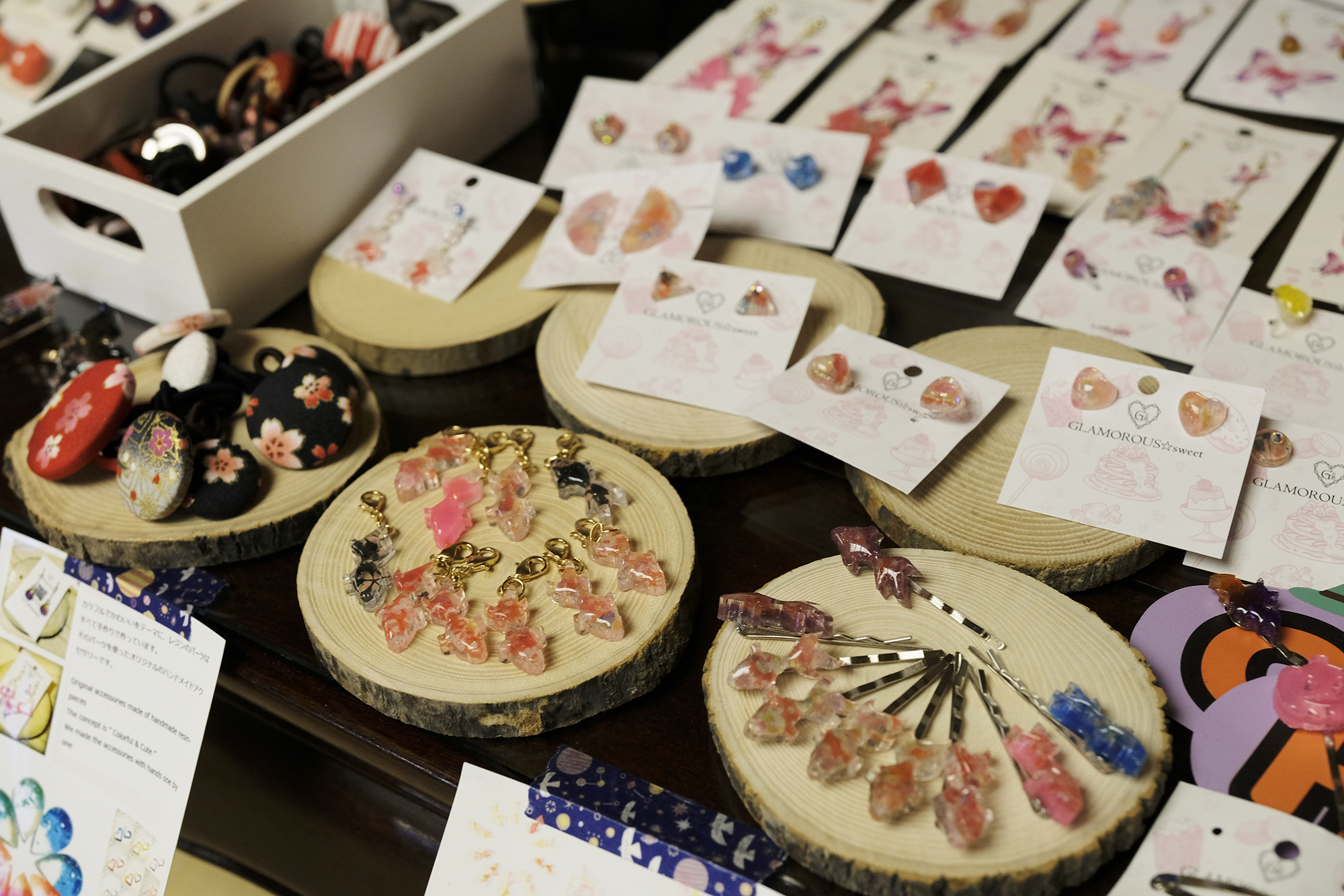 仲の良いハンドメイド仲間で参加!三人三様の可愛いデザインの今流行り・レジンアクセサリー類を販売!