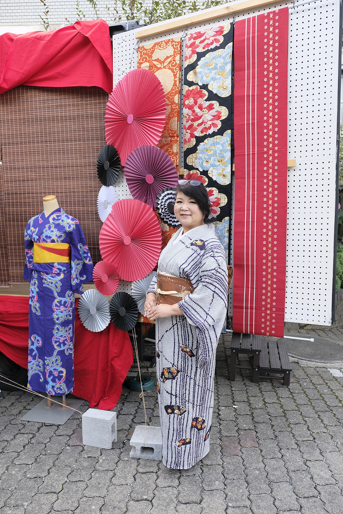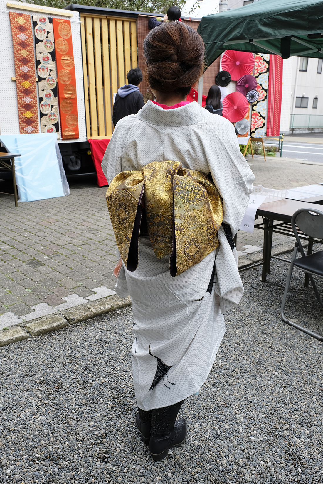 朝10:00頃お伺いすると、出演者の方々が皆様着物へお召し変えやネイル、メイク、髪結いの準備、ブースの準備など和やかにされておりました。一般の方からすると着物の着付けは大変だと思うのですが、そこは流石プロ!ファッションショーもされている程ですので、皆様着付けのスピードが速くてらっしゃって、尊敬でございます。