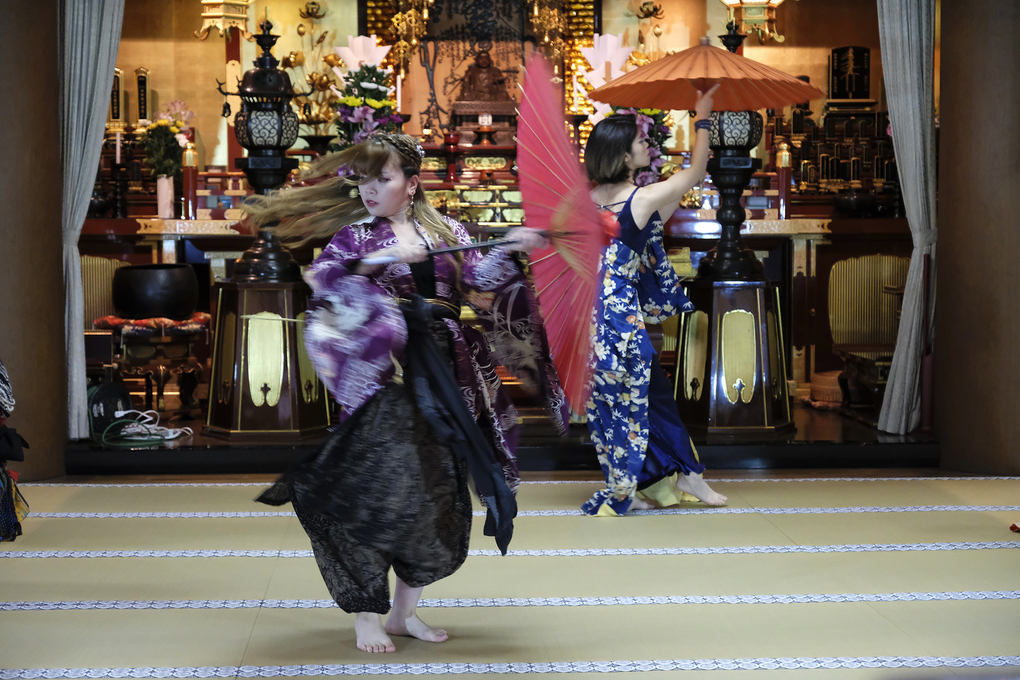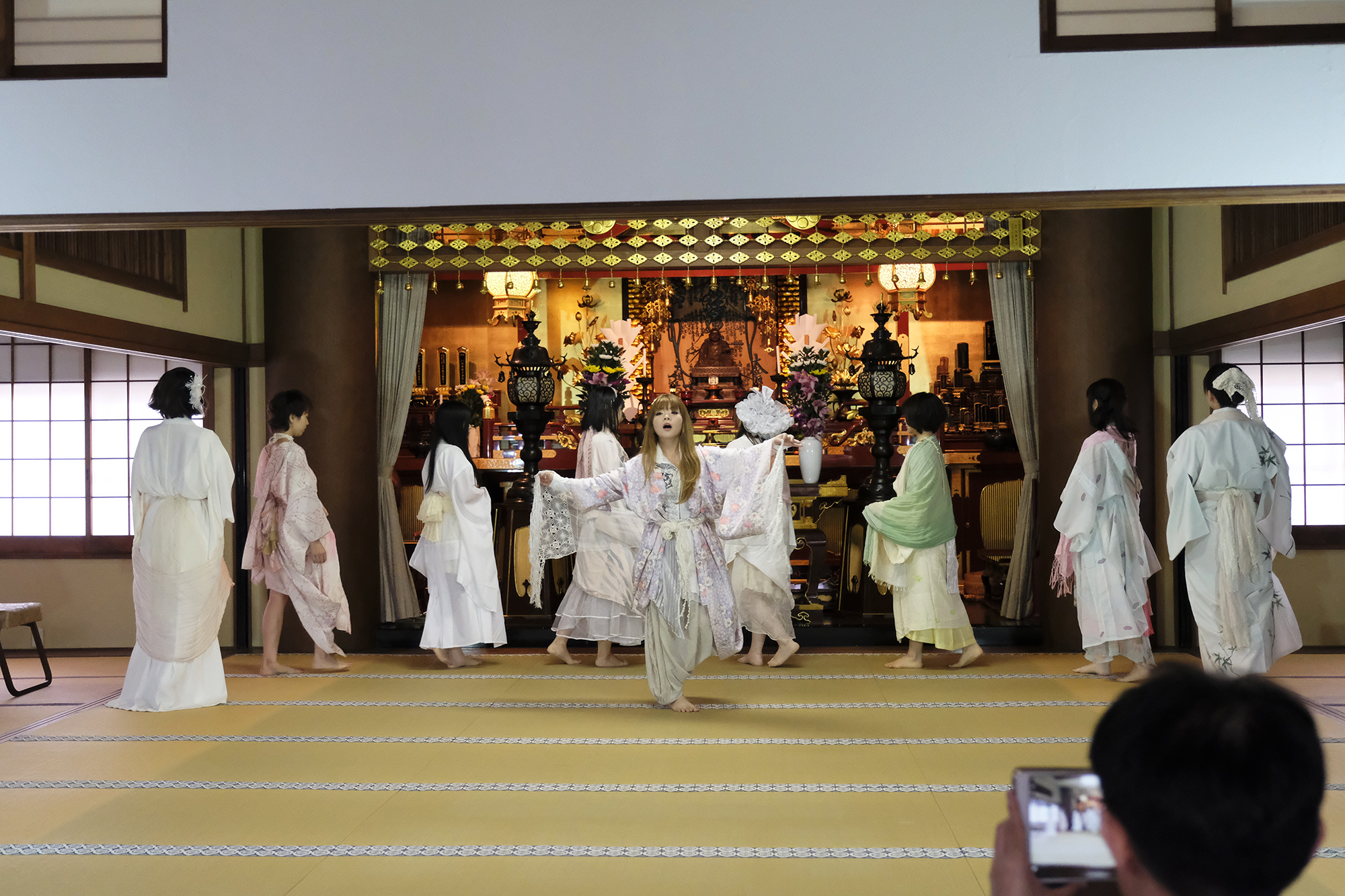 【本堂でのパフォーマンスショー】