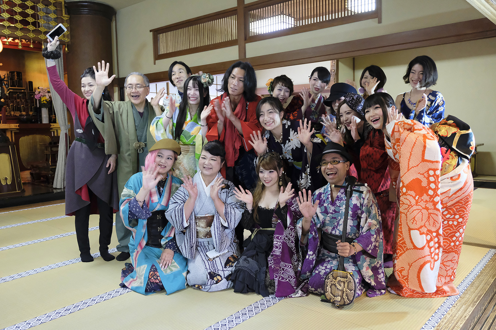 今回の「北斎×着物 お寺でフェス2018」主催の皆様。(向かって右から)