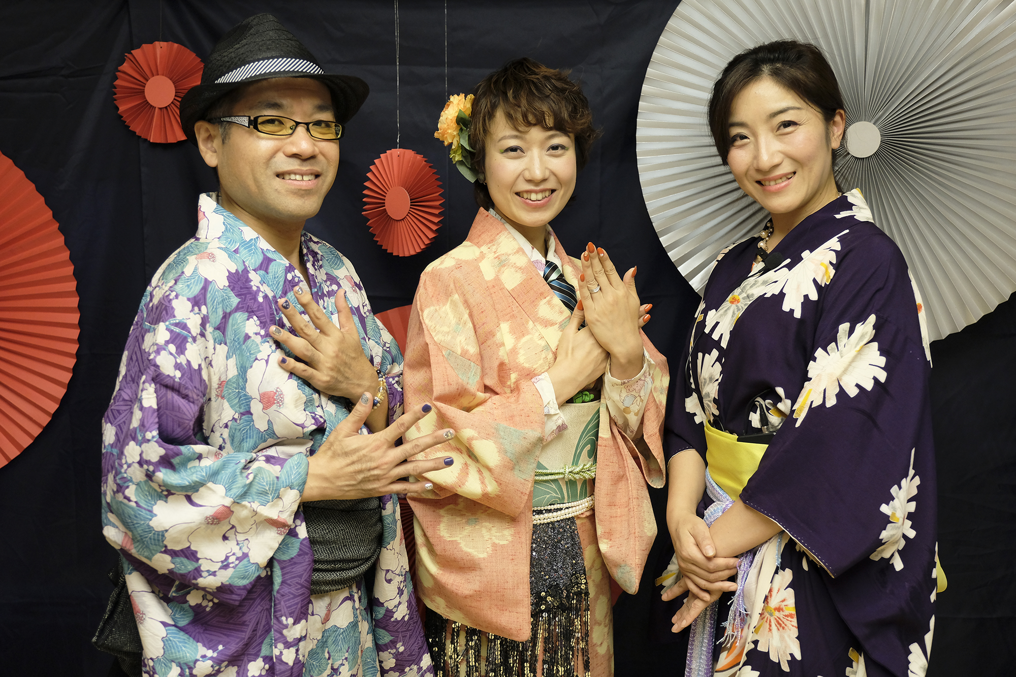 この日、書道パフォーマーの永島さんと共演、ステージでも数回参加で引っ張りだこ!とてもユーモア溢れる人柄のタケシィさん!着物に合わせたネイルもとても素敵でした。
