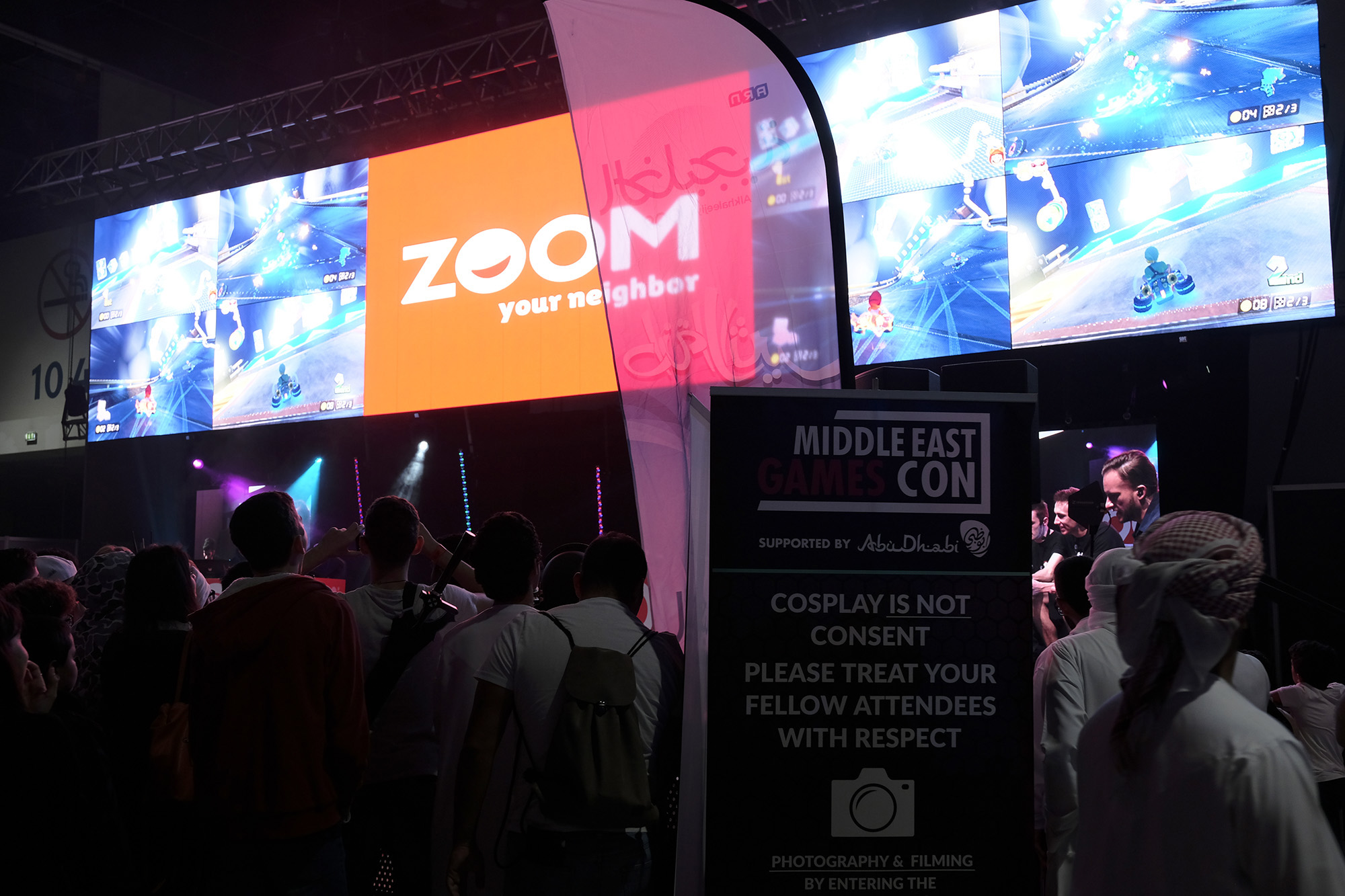 ZOOMはショッピングをより便利に、ドバイ・アブダビに拠点を持つコンビニ · 小売り · 食料品店を行う企業。今世界で大人気のeSportsの著名人がゲストに来て対戦が行われ、そのゲームの模様が中継されていました。写真のこの時間はNintendo Super MARIO KARTで白熱した対戦レースが行われていました!