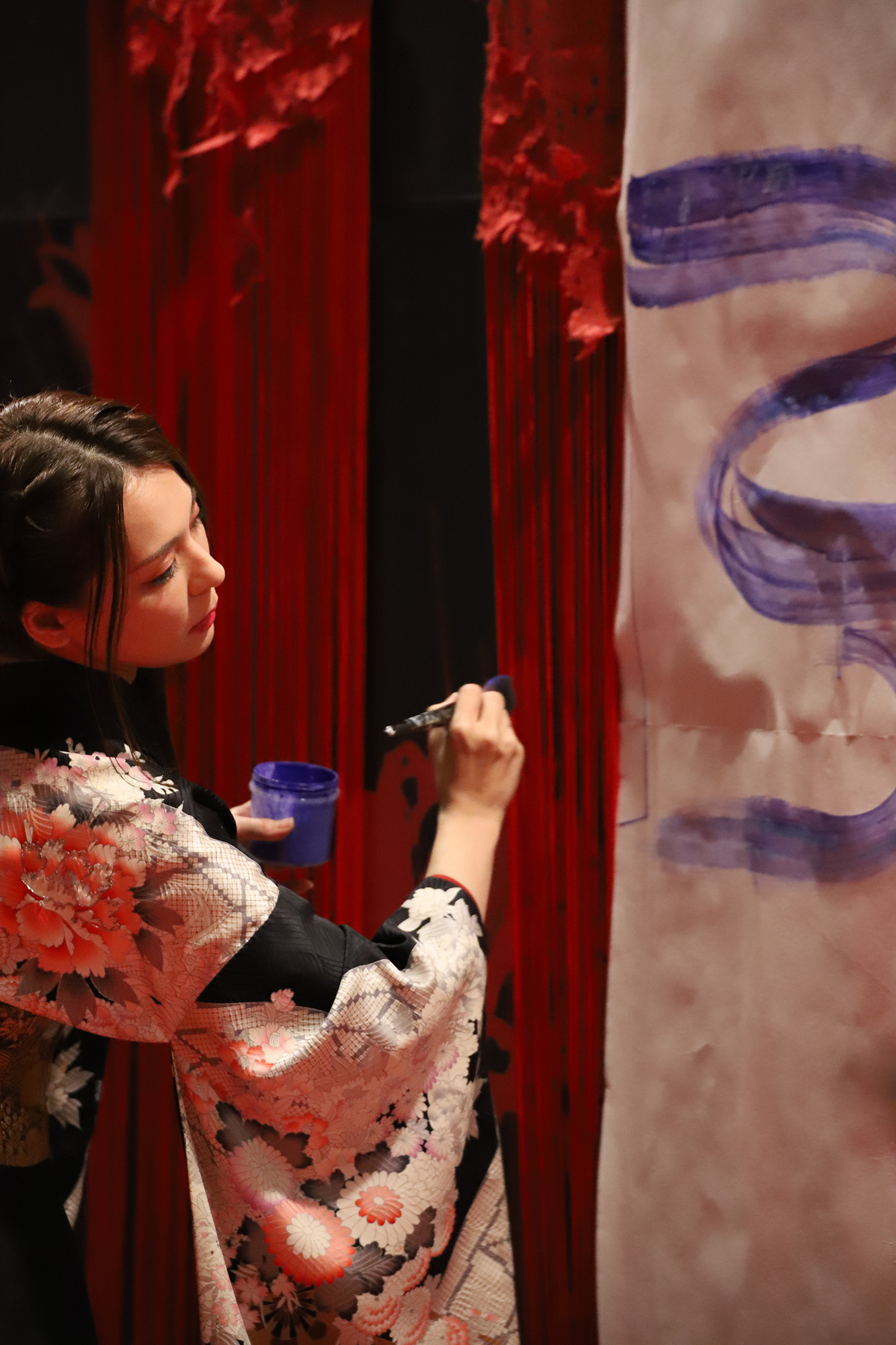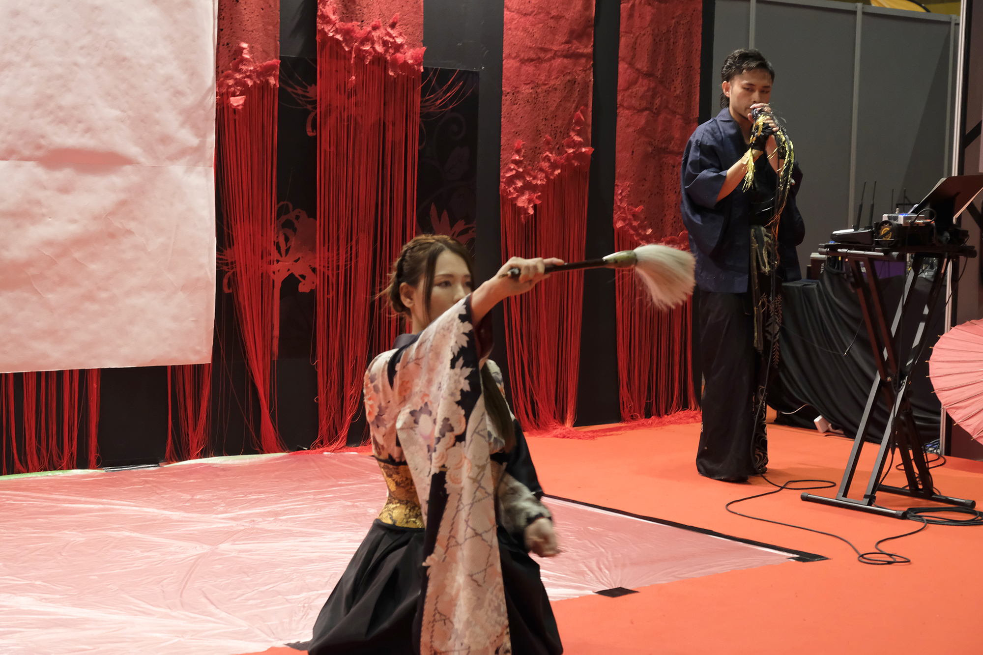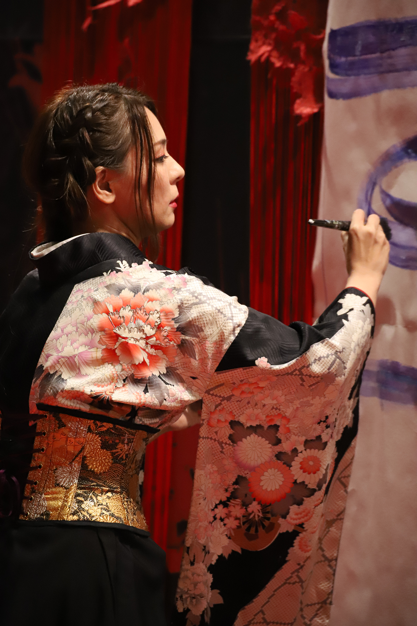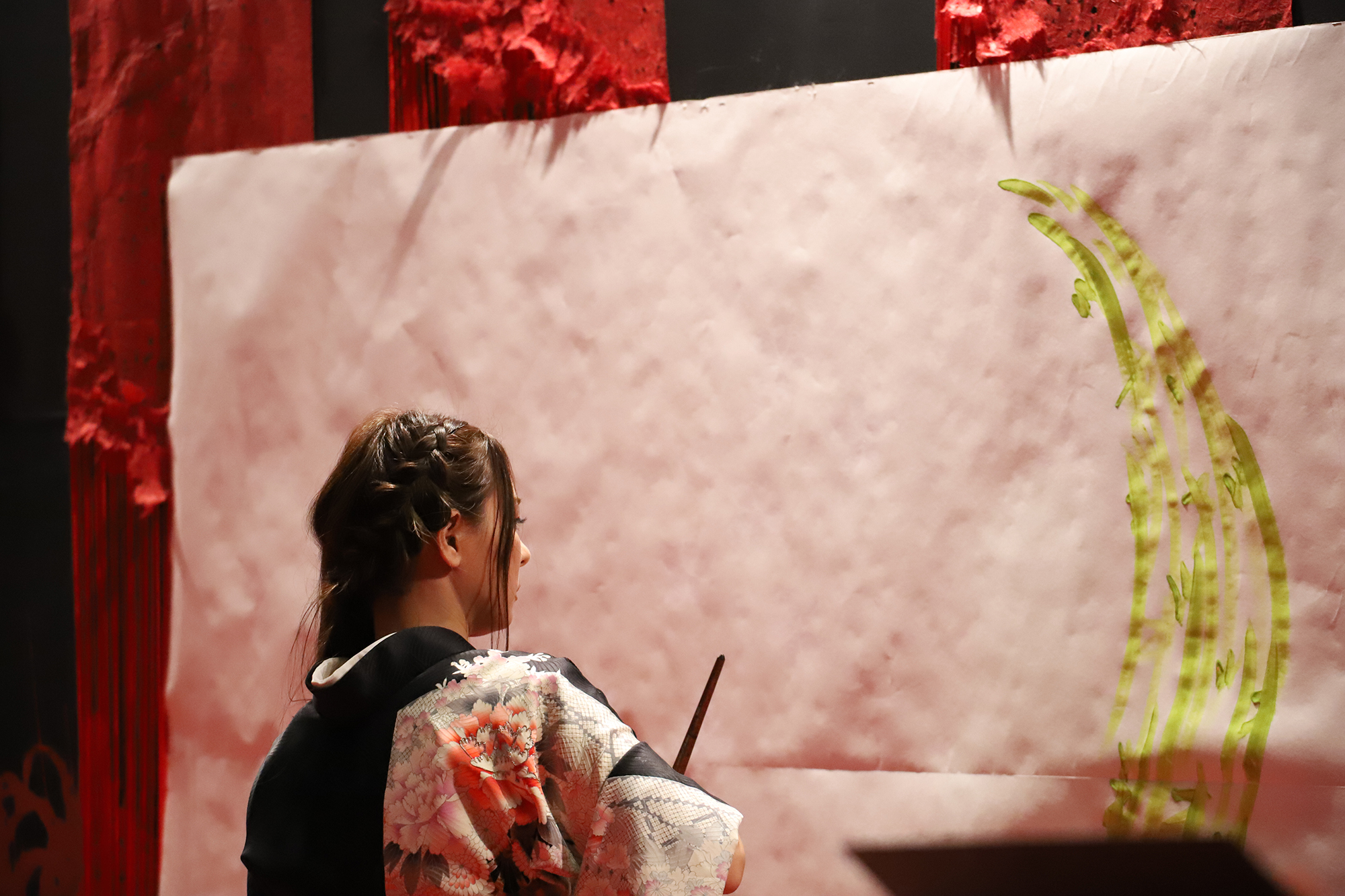 実は書を描くことで桜の模様が浮き出てくるという、細かい部分まで演出に拘って準備も”KIRIE”の美呼さんと一緒に一生懸命されていました。