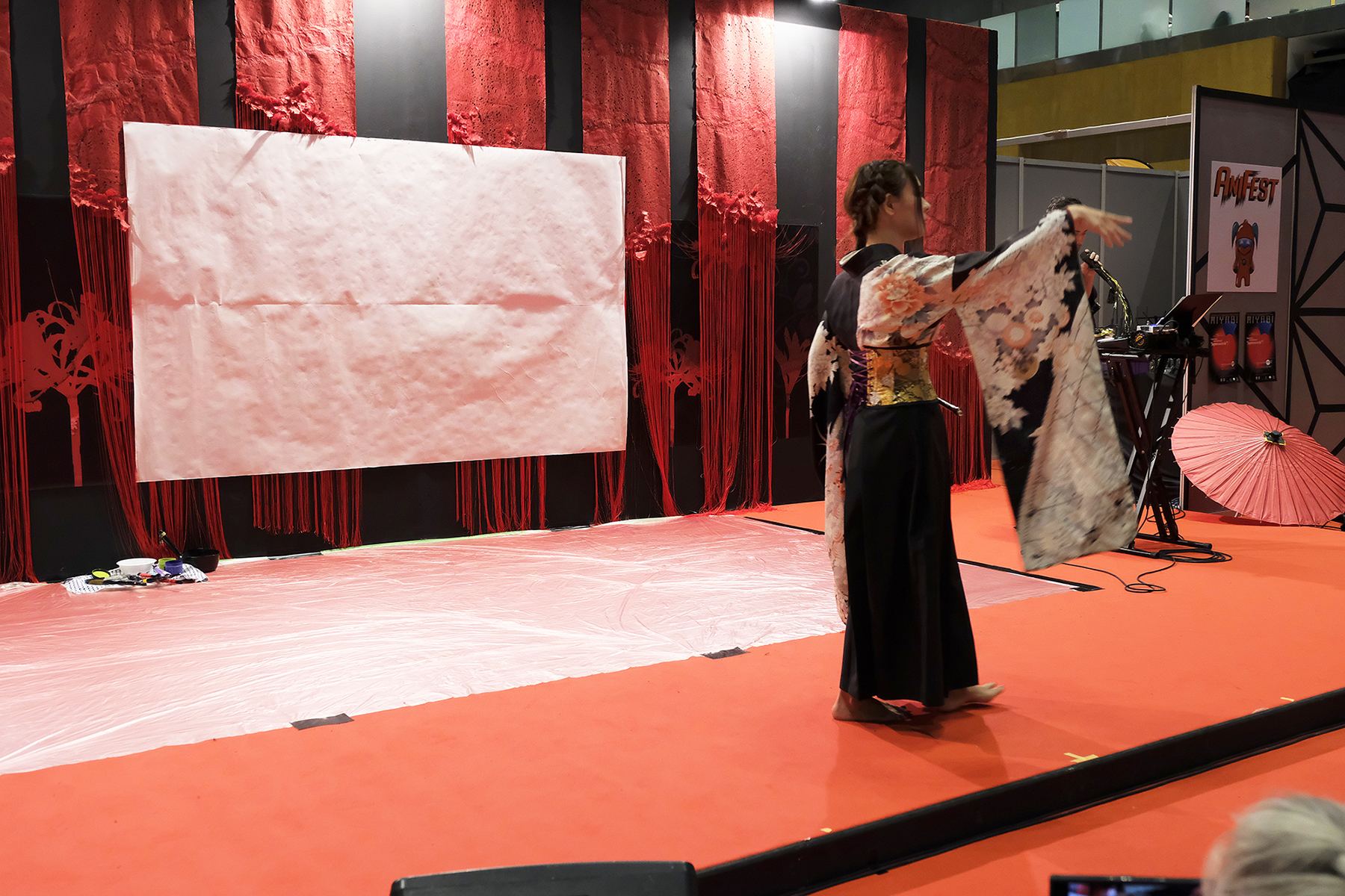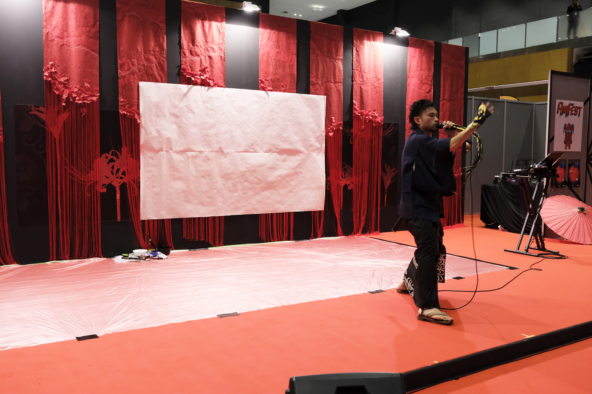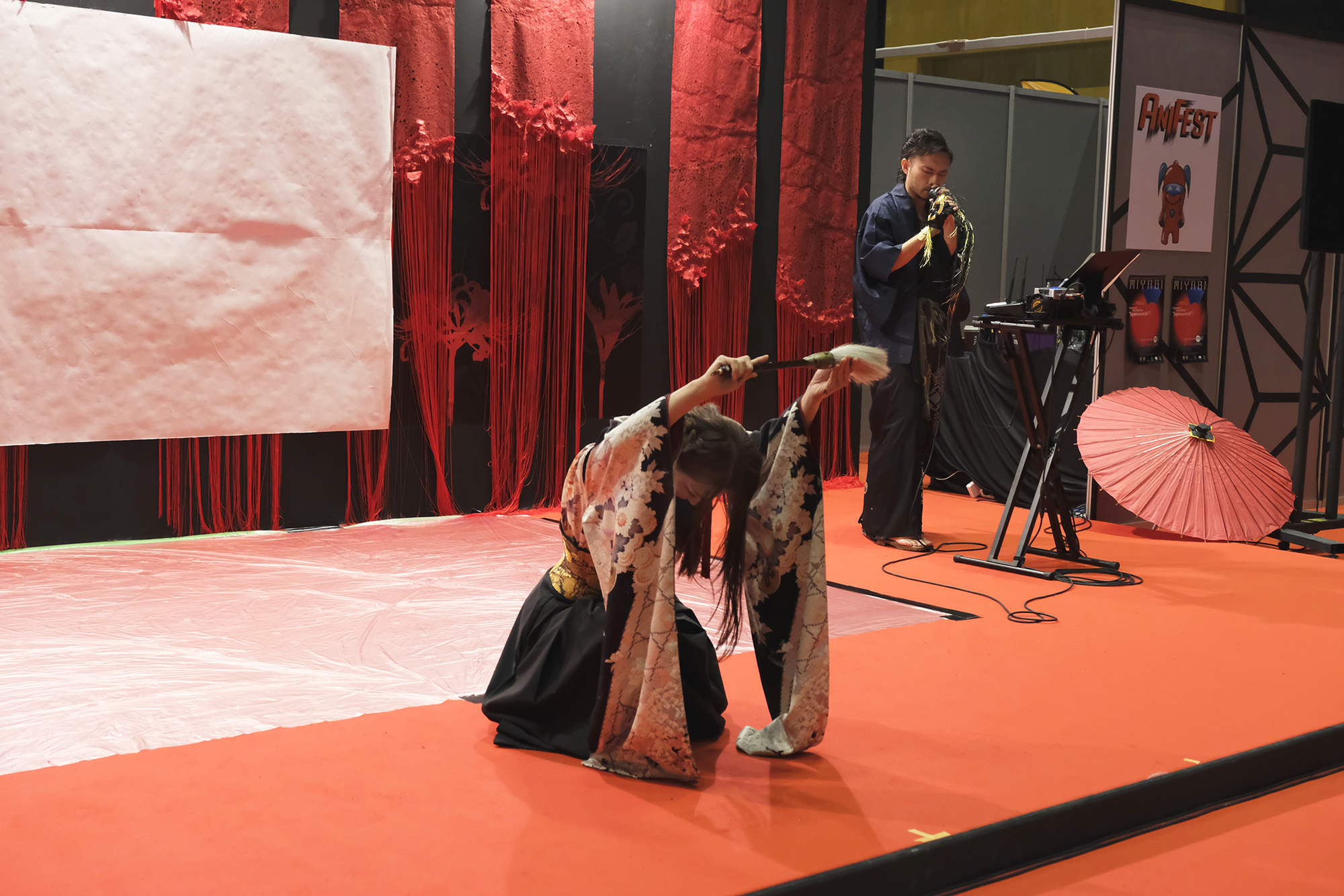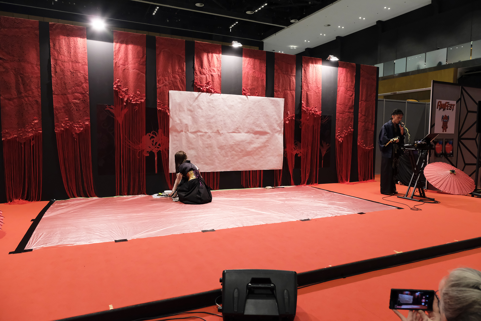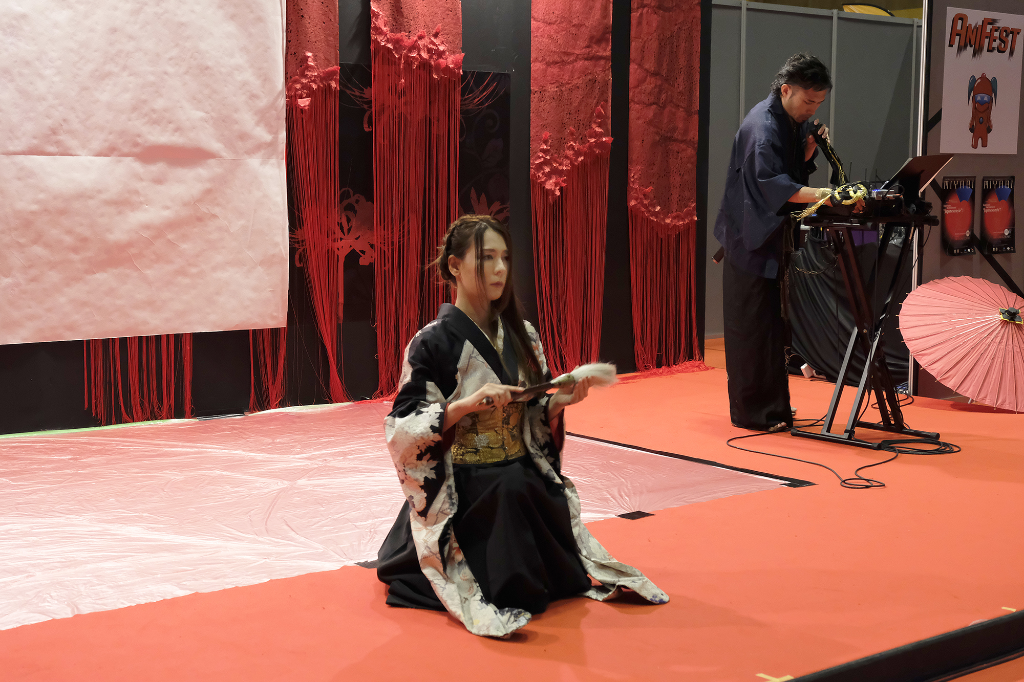 実は書を描くことで桜の模様が浮き出てくるという、細かい部分まで演出に拘って準備も”KIRIE”の美呼さんと一緒に一生懸命されていました。
