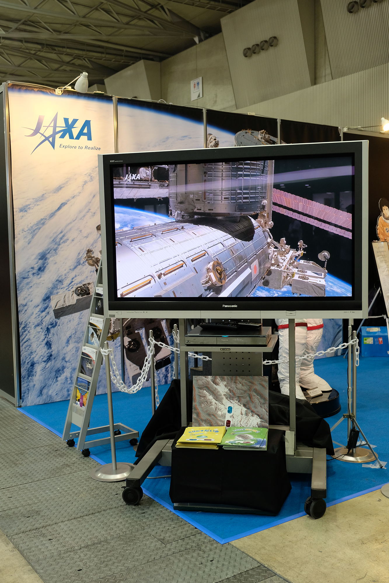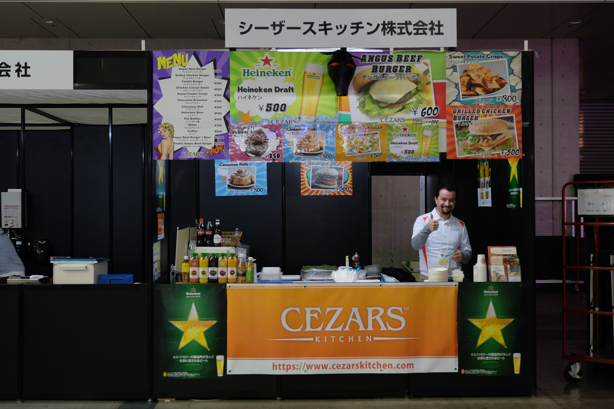 グッズ販売ブースと「ファルコン号のコックピット」の臨場感が味わえる体感型アトラクションブースが展示されました。