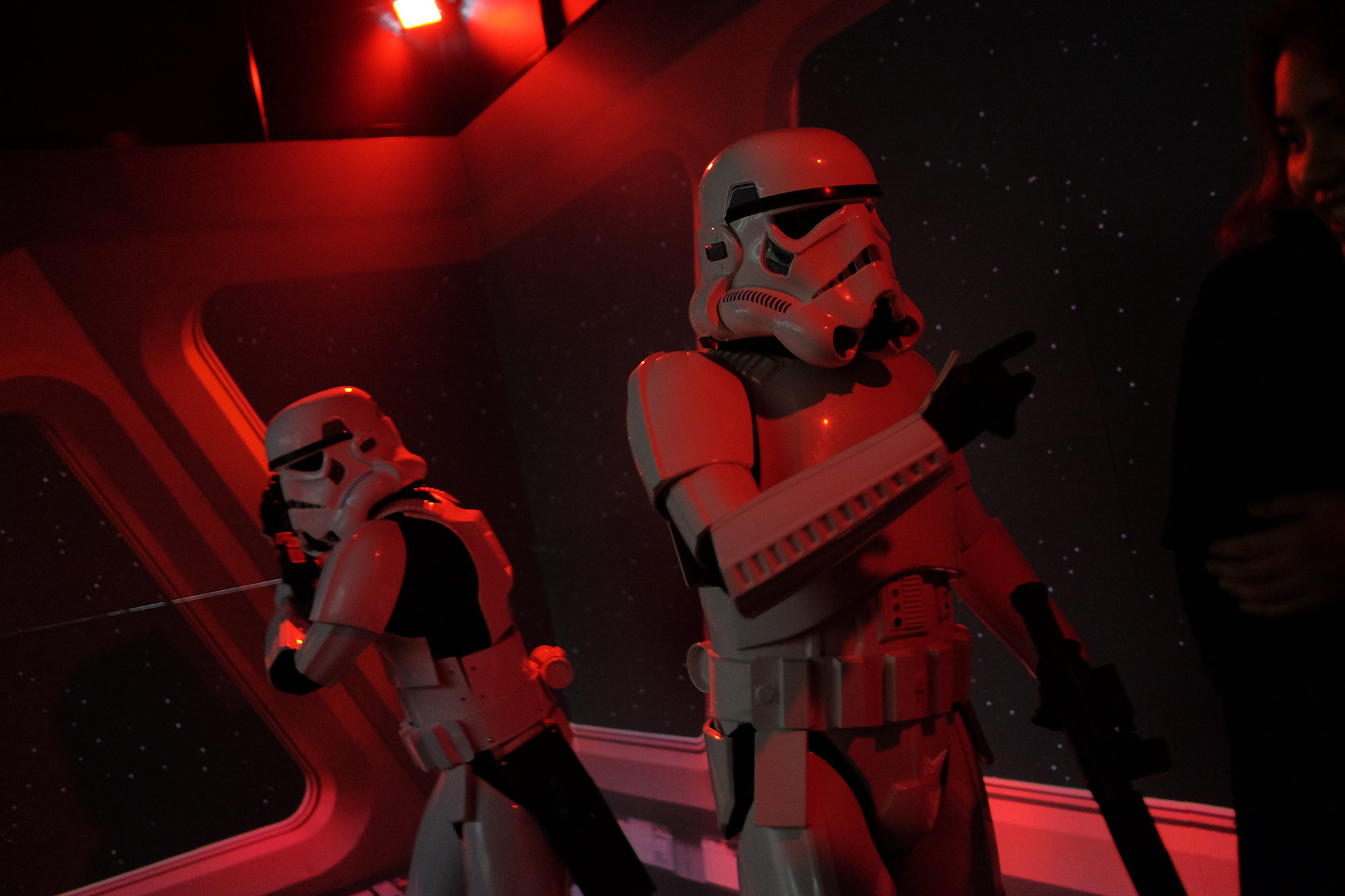 体感型ブース「ファルコン号のコックピット」で突然ダースベーダーとトルーパーが現れ、民間人を人質に捕り危機一髪!